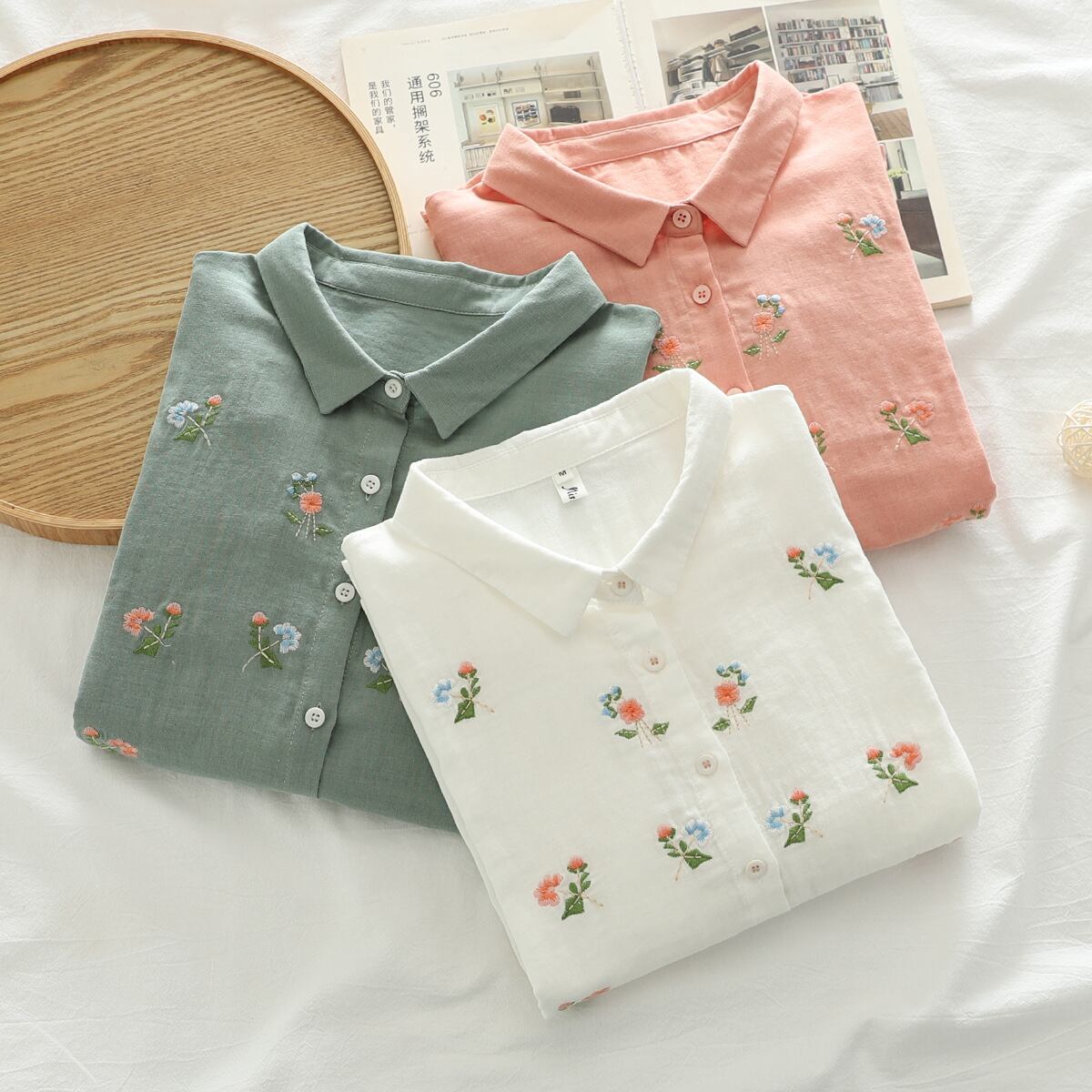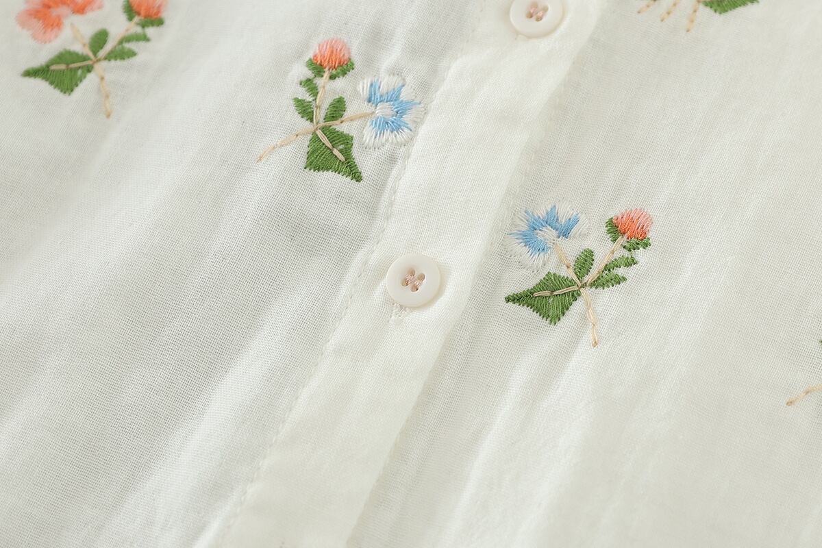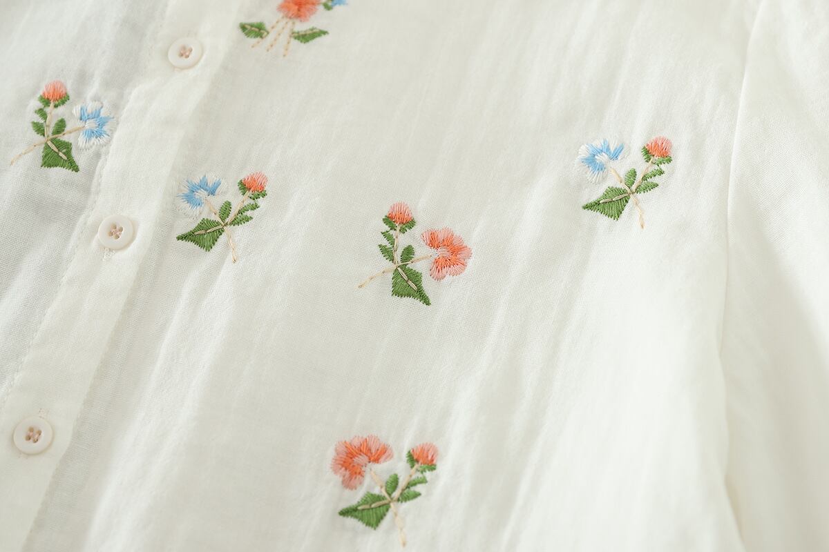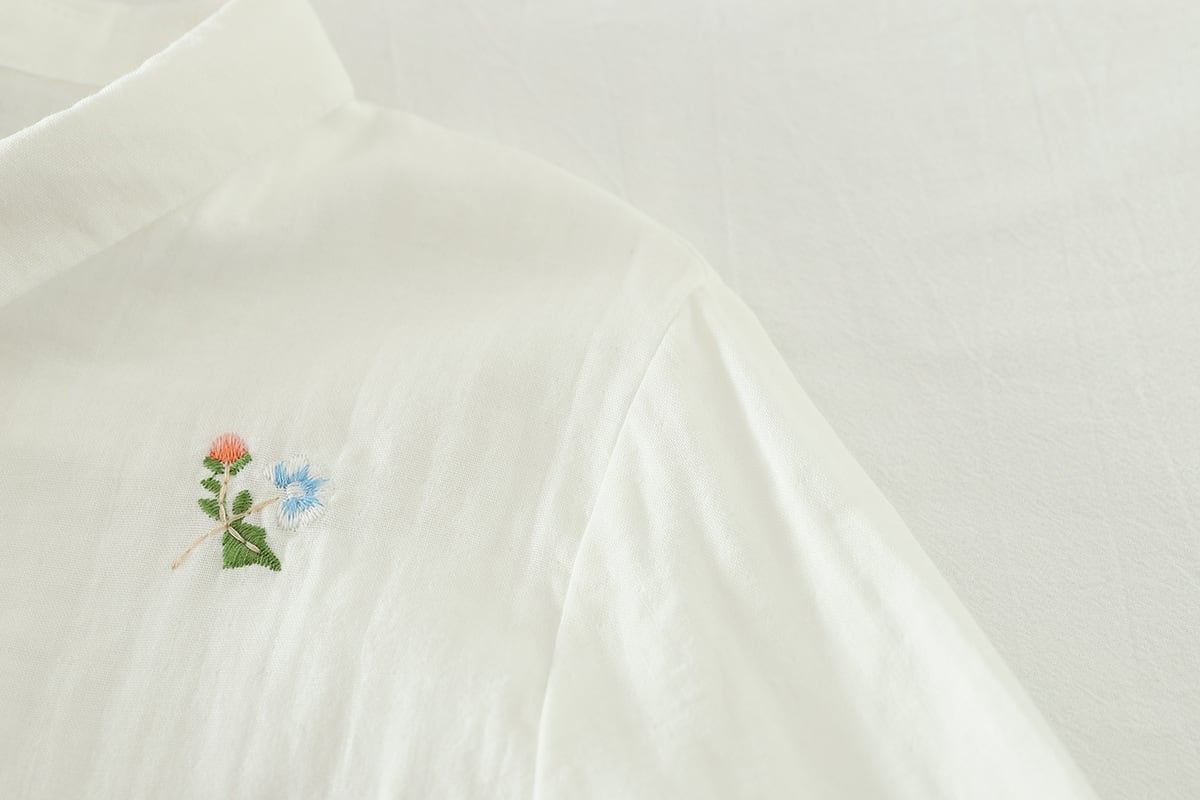 大人可愛い花柄刺繍が魅力の七分袖シャツです。