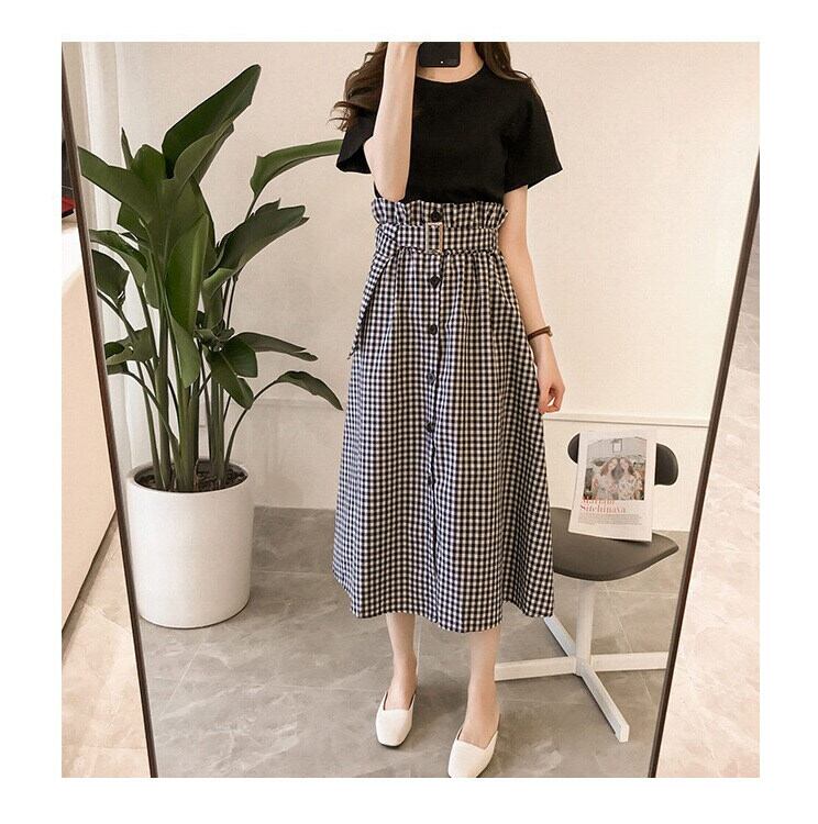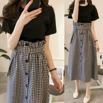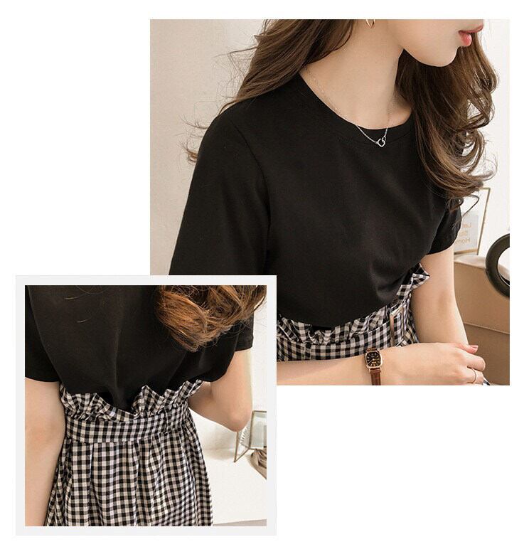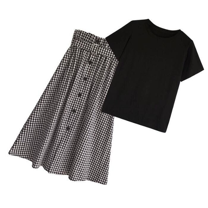 色展開 白トップス+黒スカート 黒トップス+黒チェックスカート