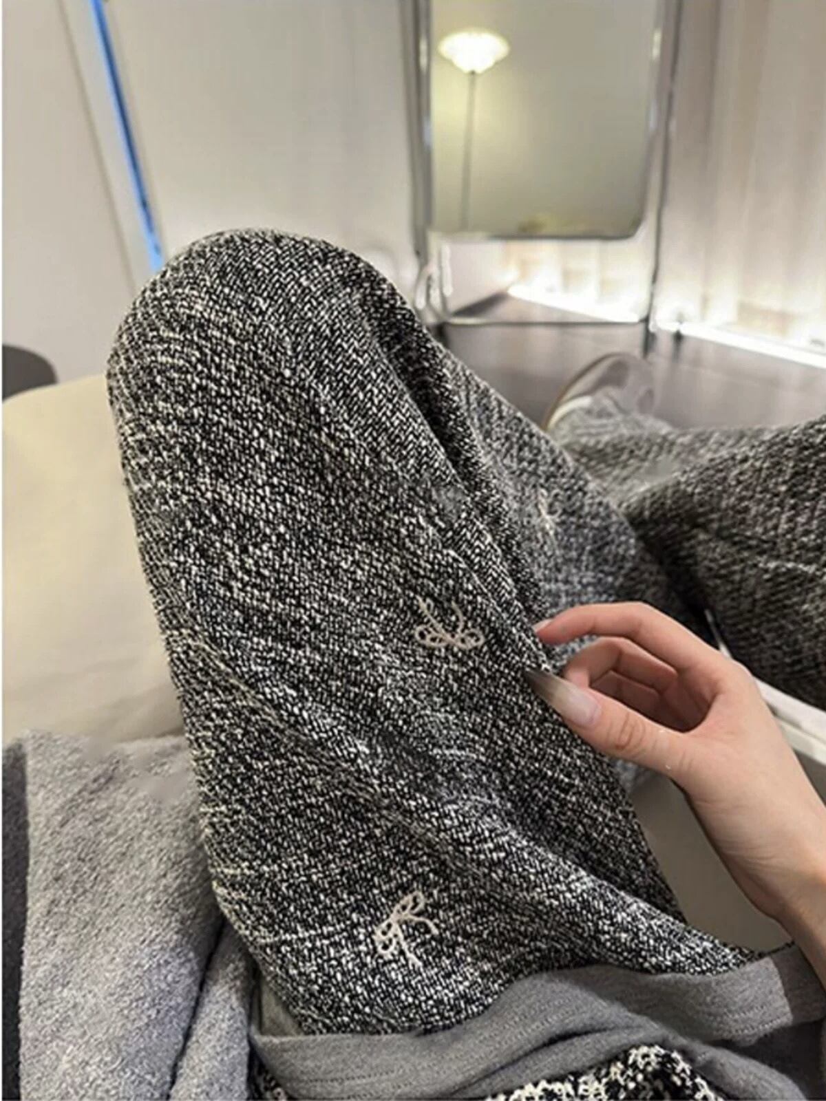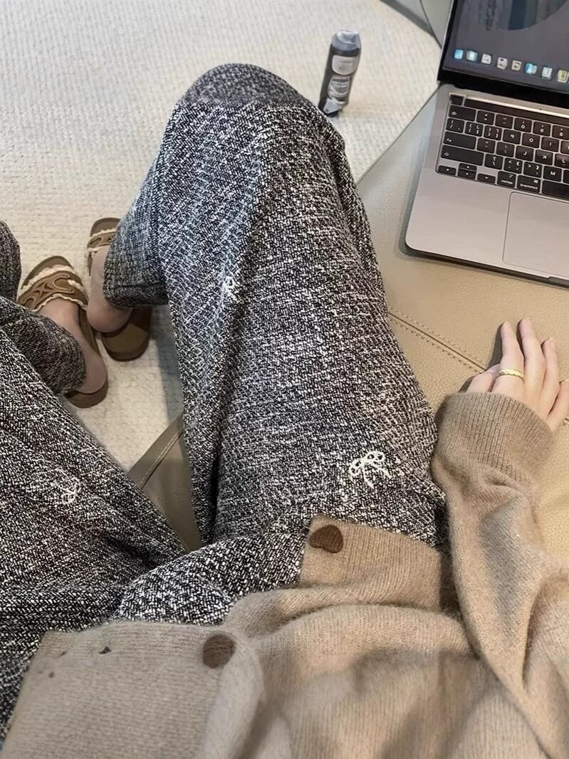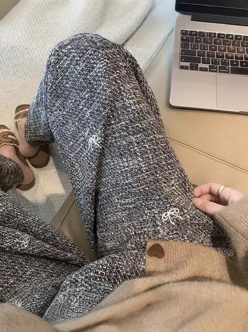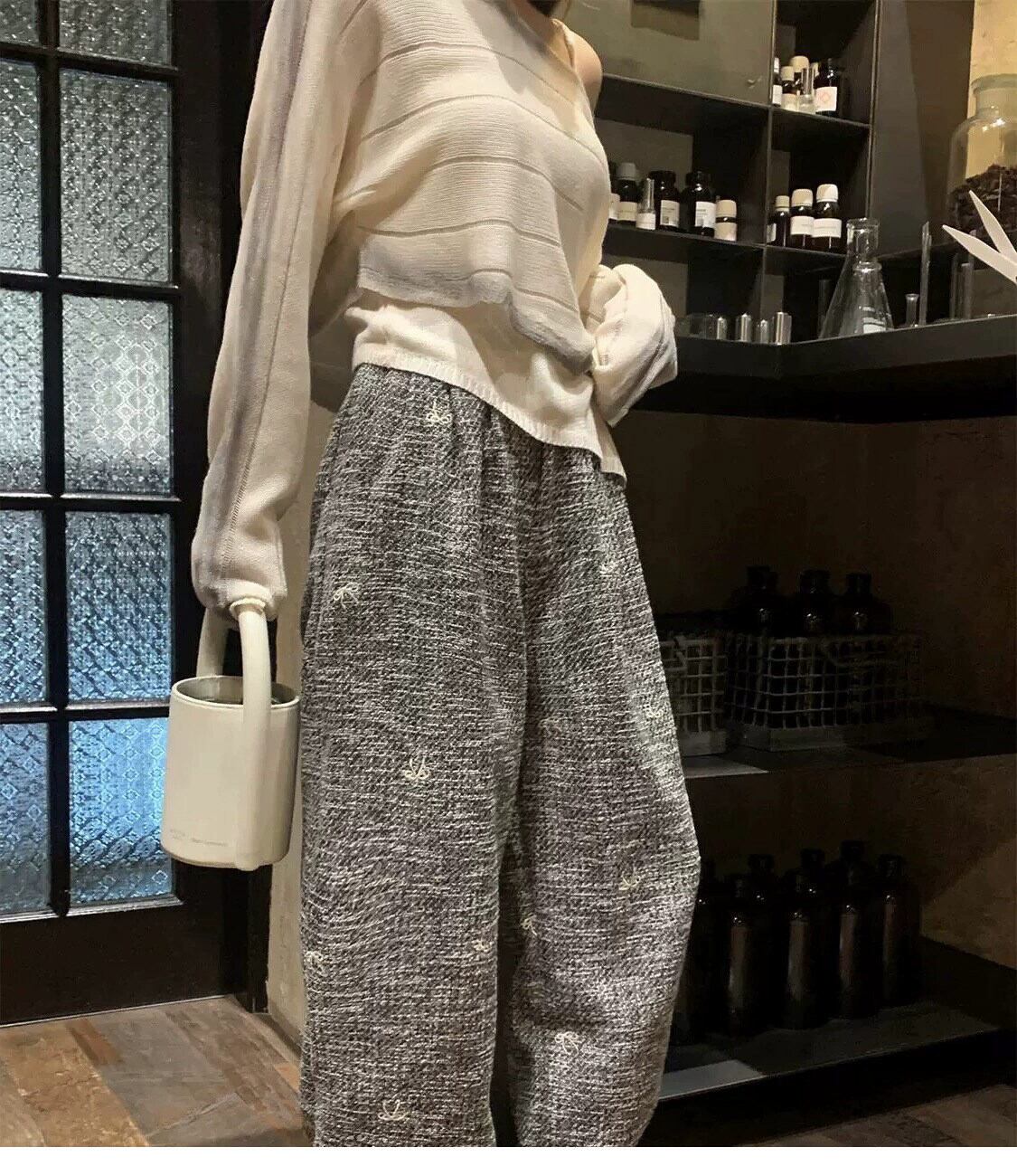 モノトーンにさりげないリボン刺繍がアクセントになったストレートパンツです。