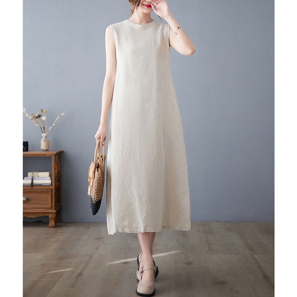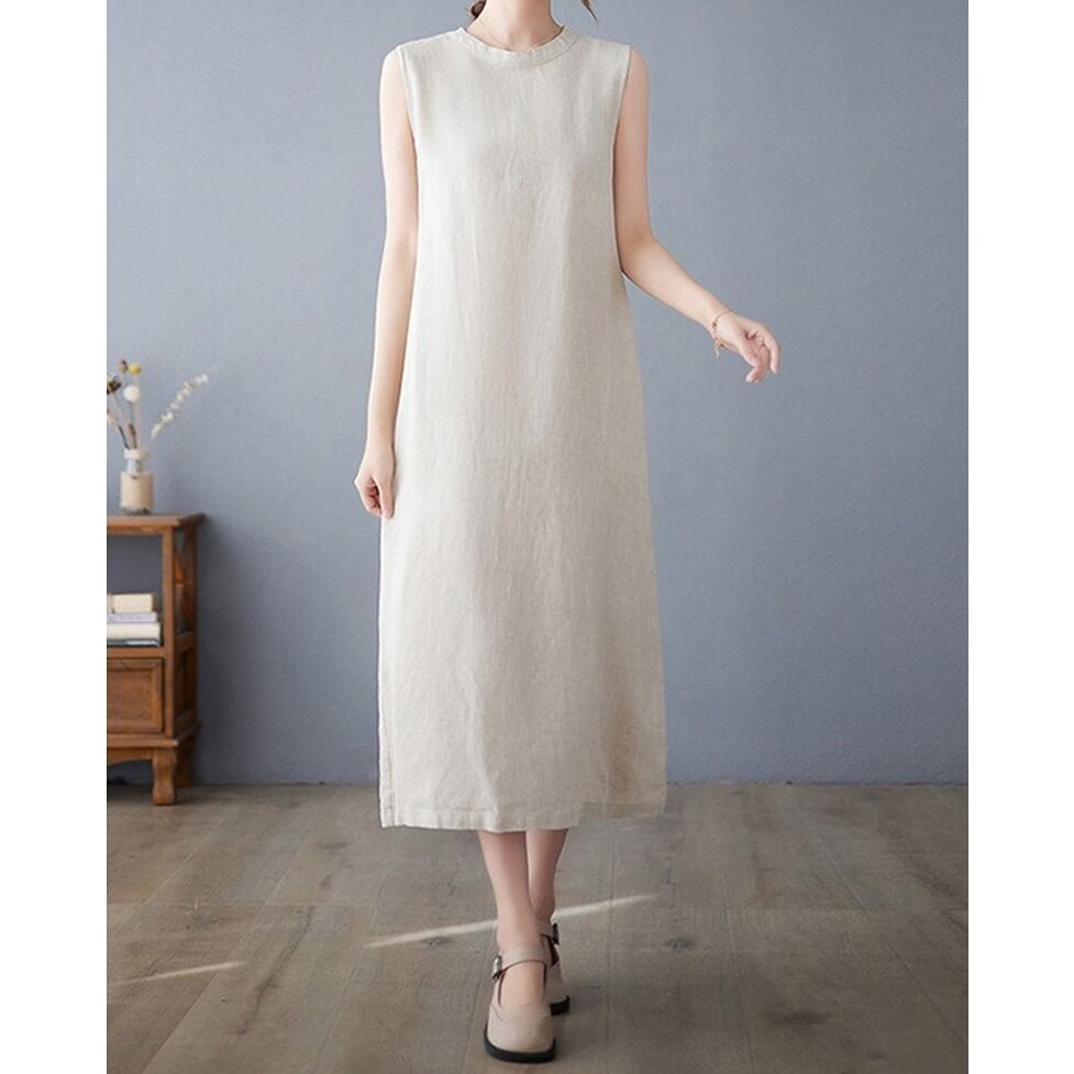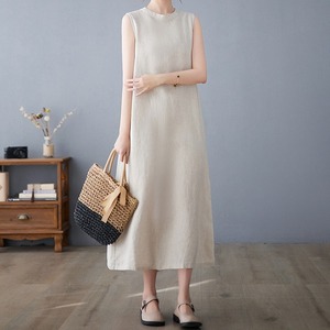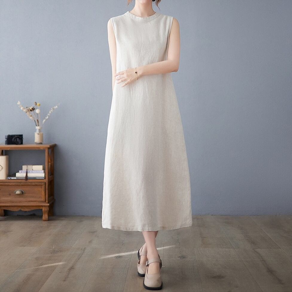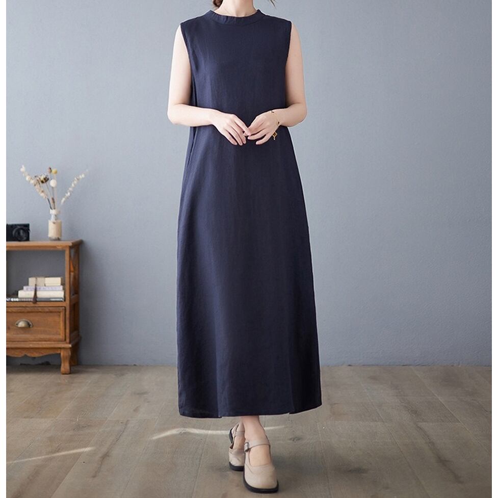 スッキリしたシルエットでナチュラルな大人っぽさを引き出してくれるノースリーブAラインロングワンピース。