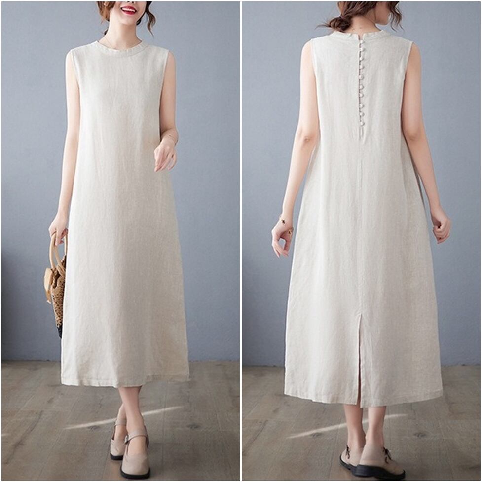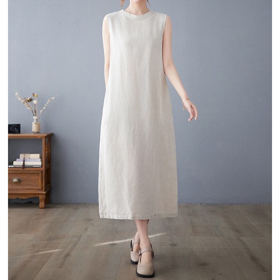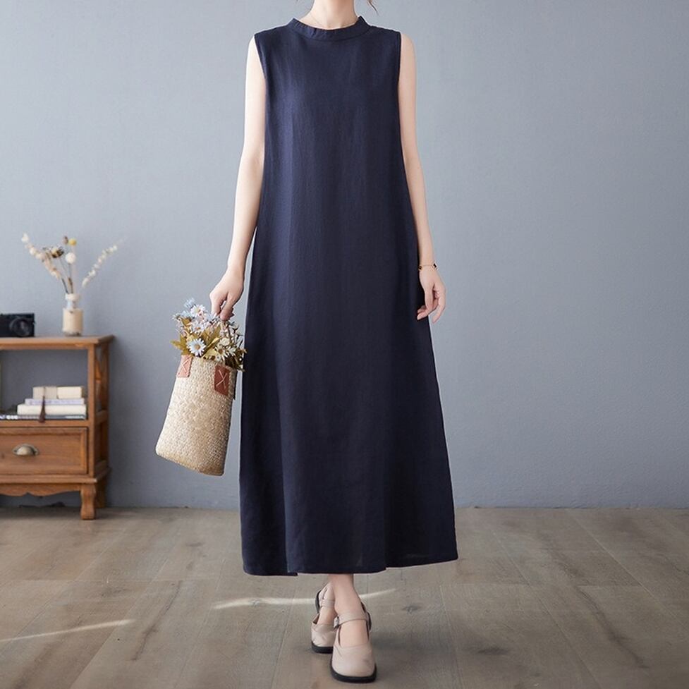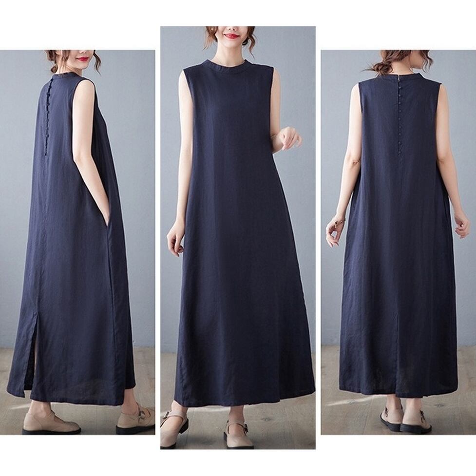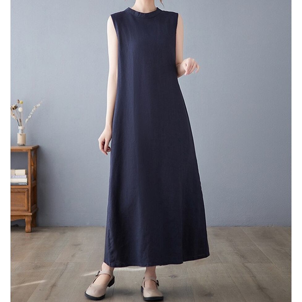 スッキリしたシルエットでナチュラルな大人っぽさを引き出してくれるノースリーブAラインロングワンピース。