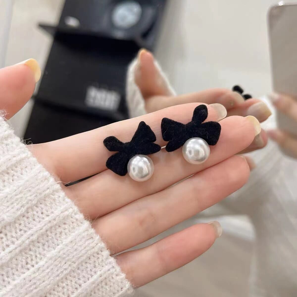 リボンとパールのデザインが特徴的で、ガーリーで大人可愛い雰囲気を醸し出します。