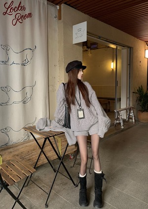 ゆるっと着られるオーバーサイズのトップスと、ショートパンツが絶妙なバランスで、こなれた大人可愛いスタイルを演出します。