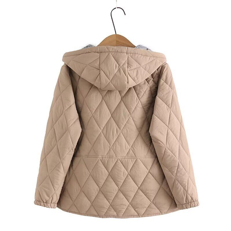 ふんわり軽くてあたたかい、ダイヤキルティングの中綿フードジャケット。