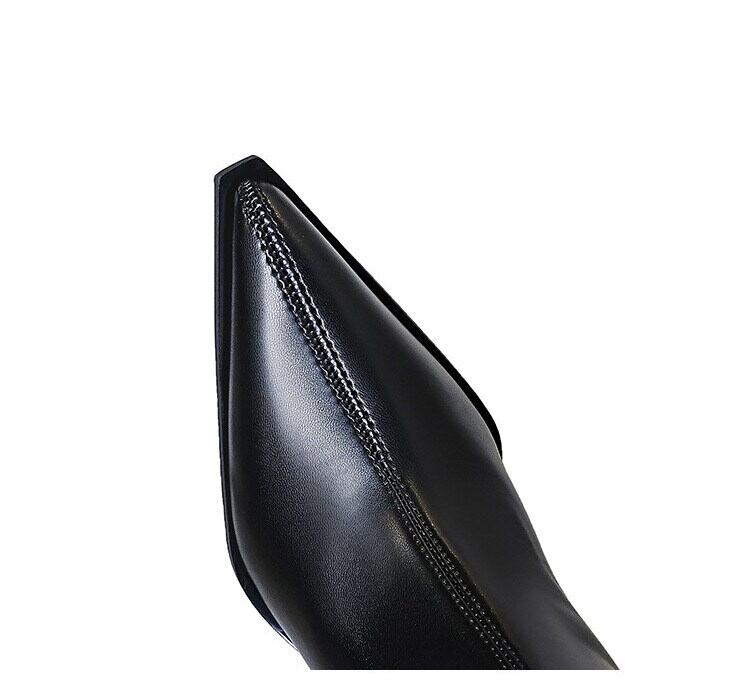 脚をすらりと長く見せるポインテッドトゥの計算されたフォルムと、安定感のあるチャンキーヒールで、美脚効果と歩きやすさを両立しています。
