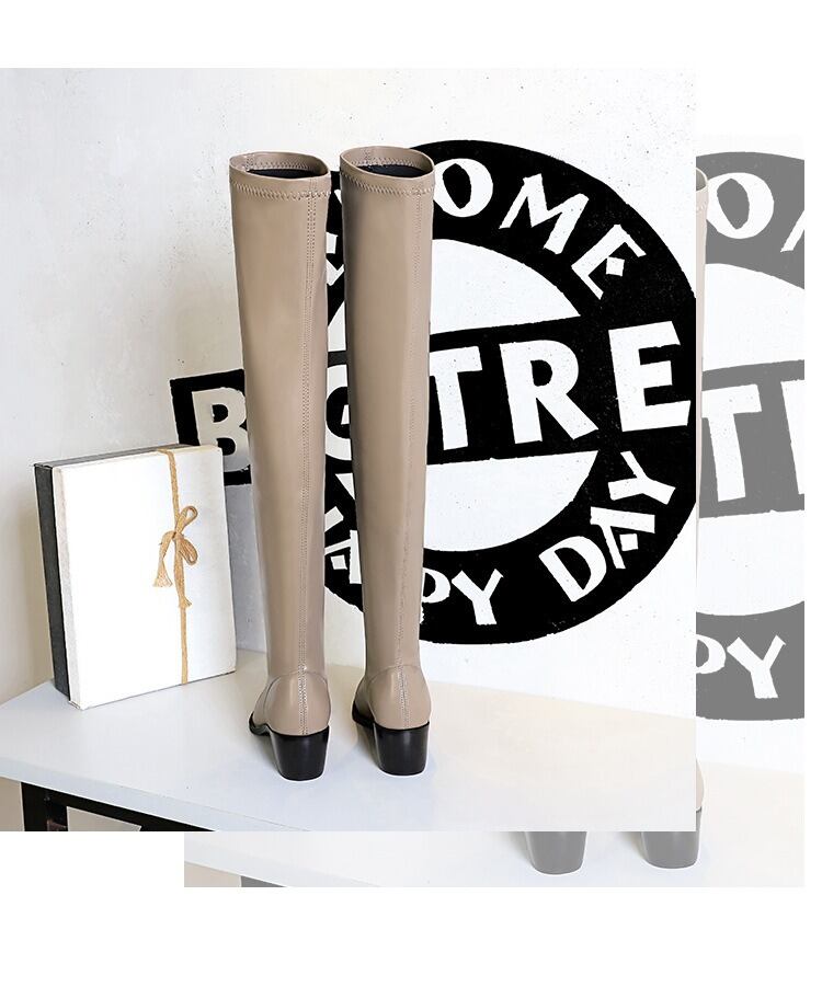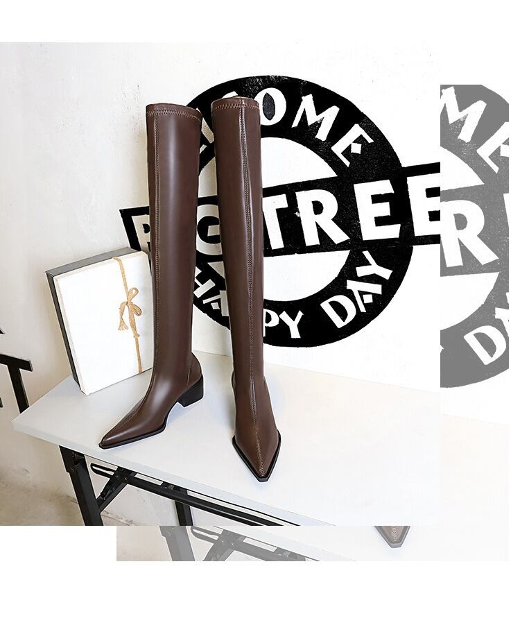 しなやかな光沢感が美しい、シンプルながら存在感のあるニーハイブーツです。