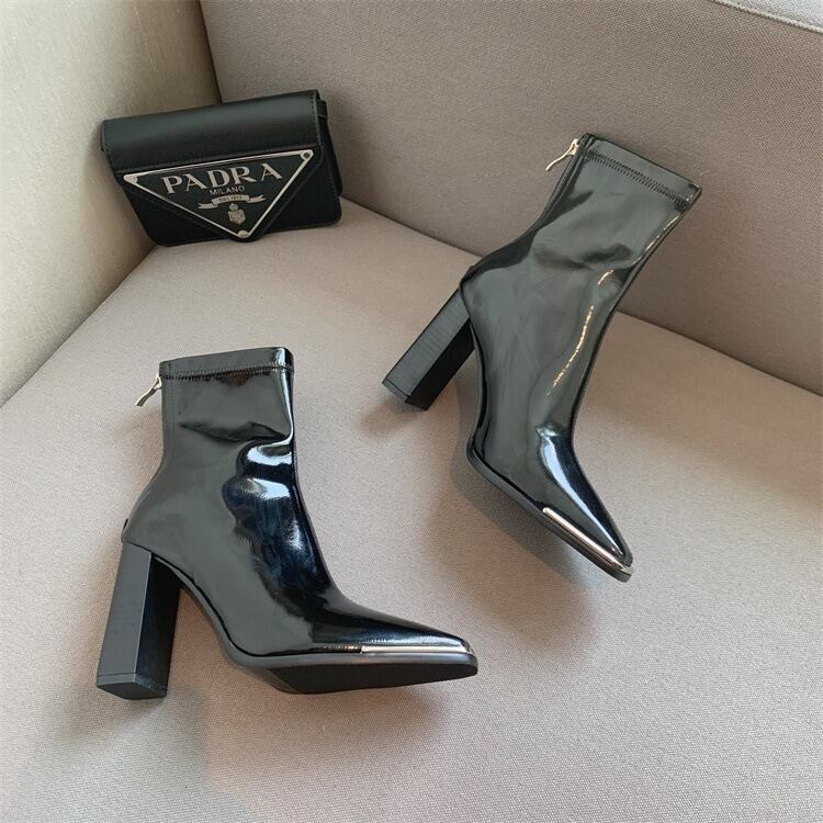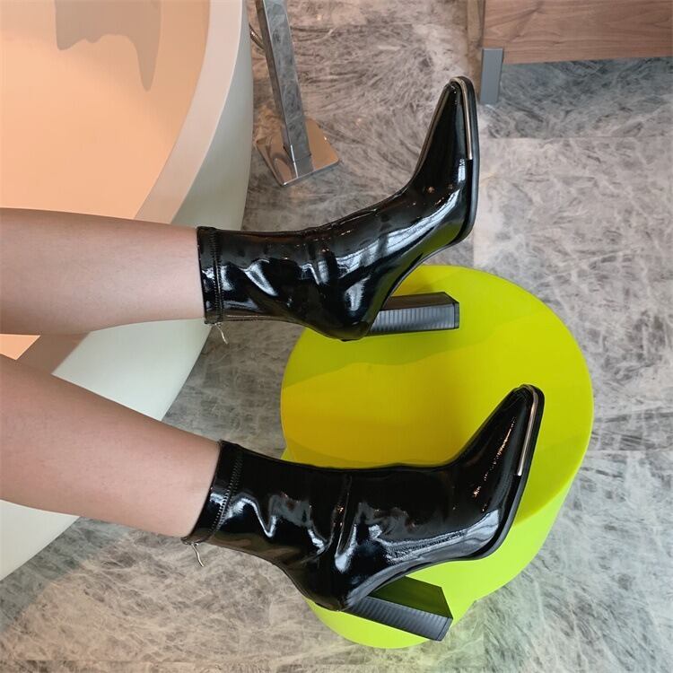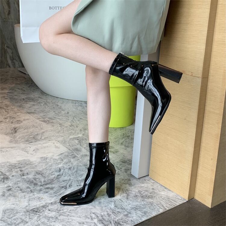艶やかなデザインが魅力のショートブーツは、ハイヒールで美脚&脚長効果を叶えながら、太ヒールで安定感のある履き心地を実現。