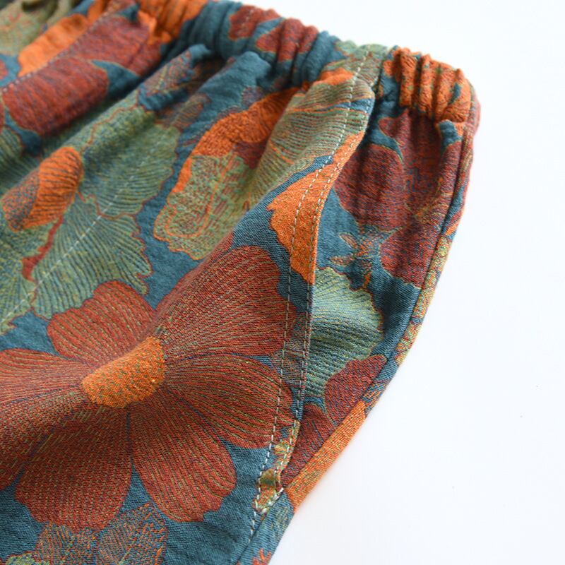 ウエストゴムのデザインで、楽ちんさとおしゃれを両立したアイテムです。異国風の花柄やエスニックなテイストが魅力的で、部屋着や寝巻きとしても活躍します。休日のリラックスタイムや、お泊まり、旅行にも最適で、普段使いとしても大人可愛い印象を与えます!