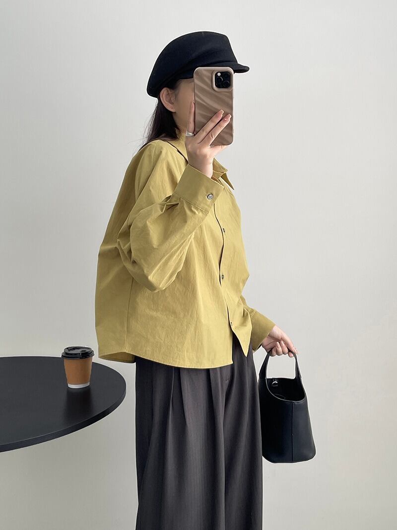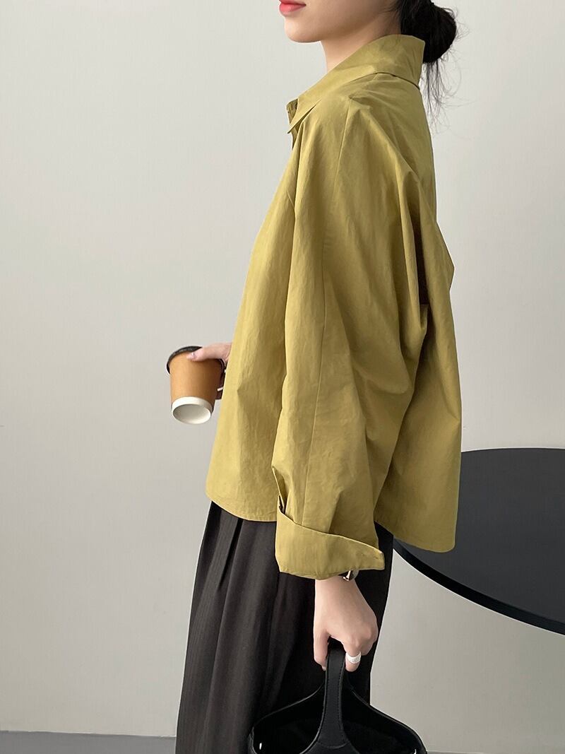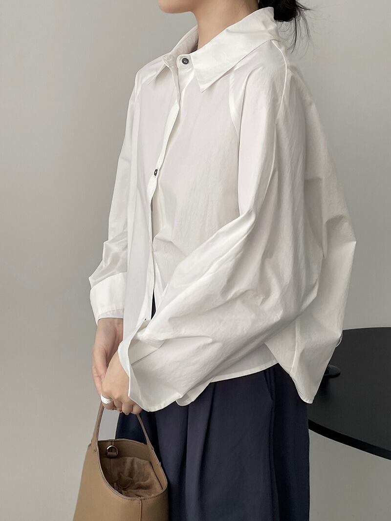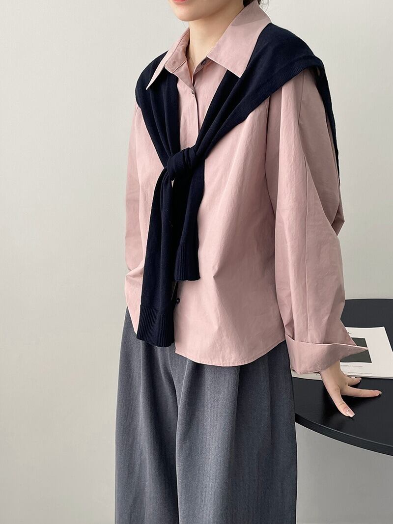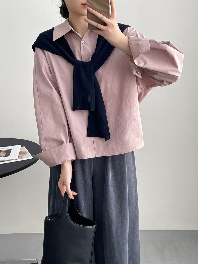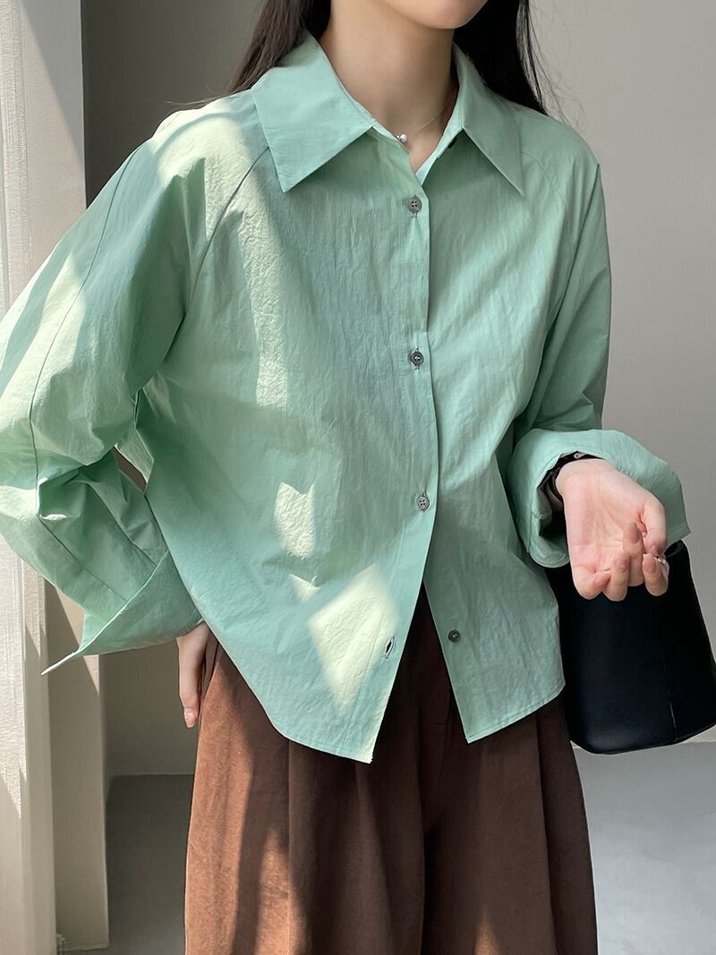 前開き&オーバーサイズデザインで、こなれ感と抜け感のある大人可愛いスタイルを演出できる、襟付きラグランシャツです。