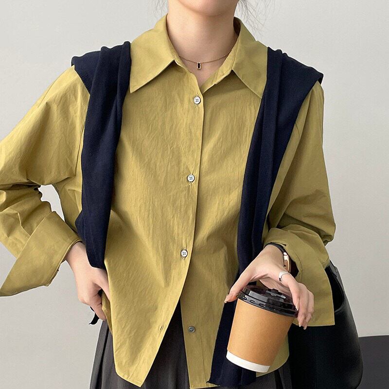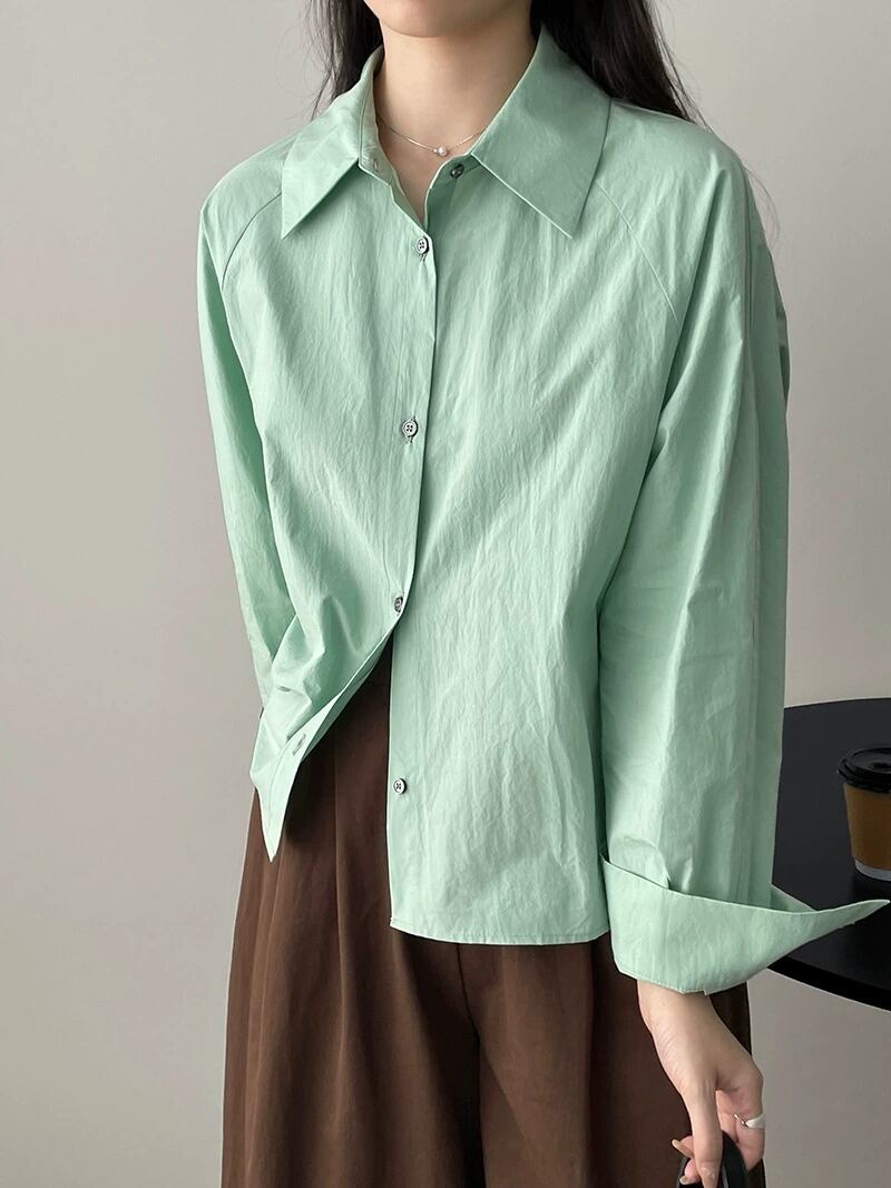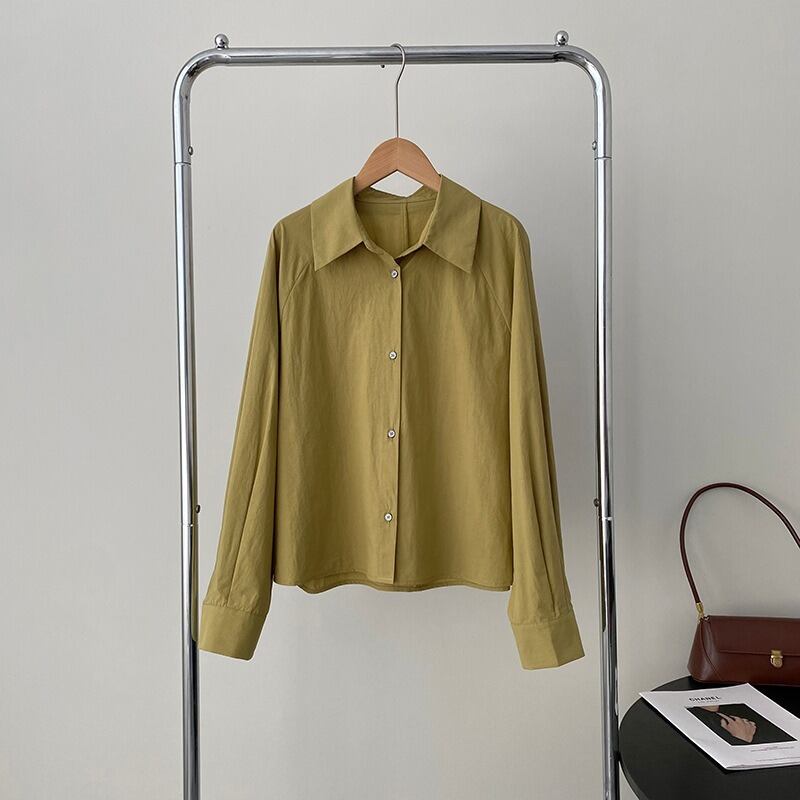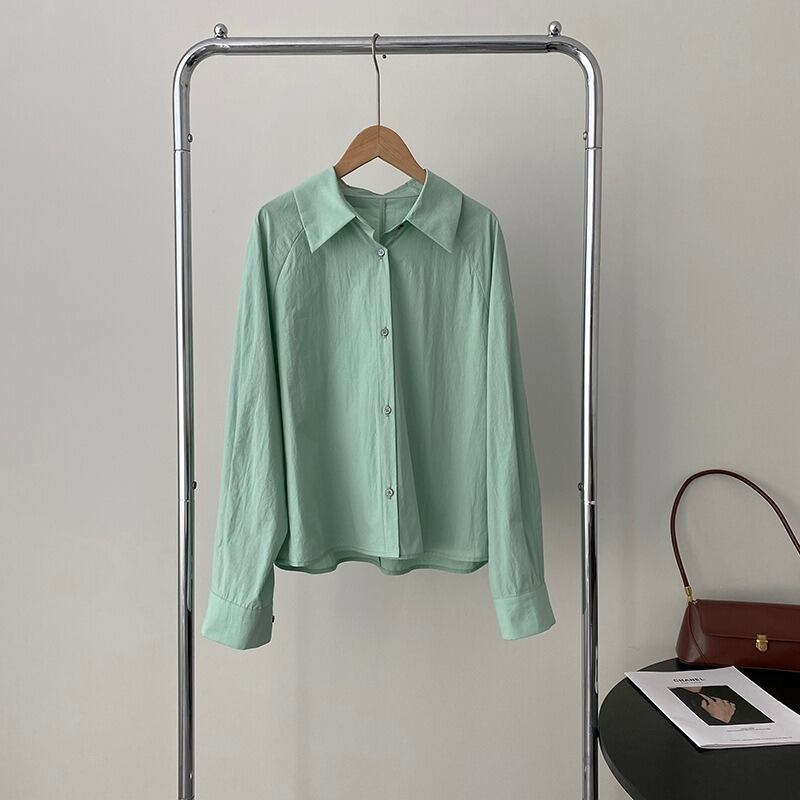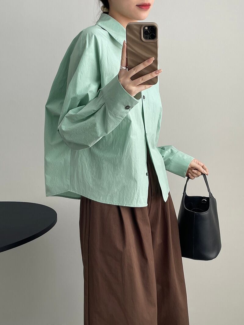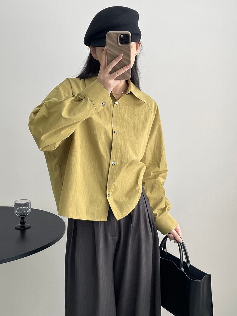 前開き&オーバーサイズデザインで、こなれ感と抜け感のある大人可愛いスタイルを演出できる、襟付きラグランシャツです。