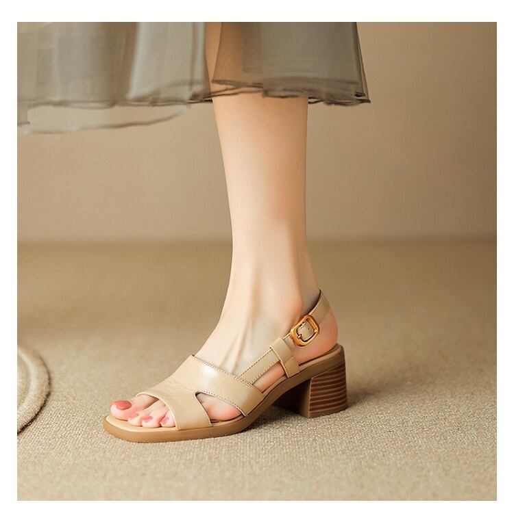 3cmの太ヒールがしっかりとした安定感を提供し、スクエアトゥが洗練された印象を与えます。