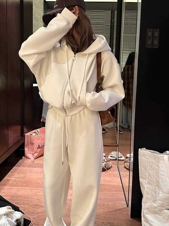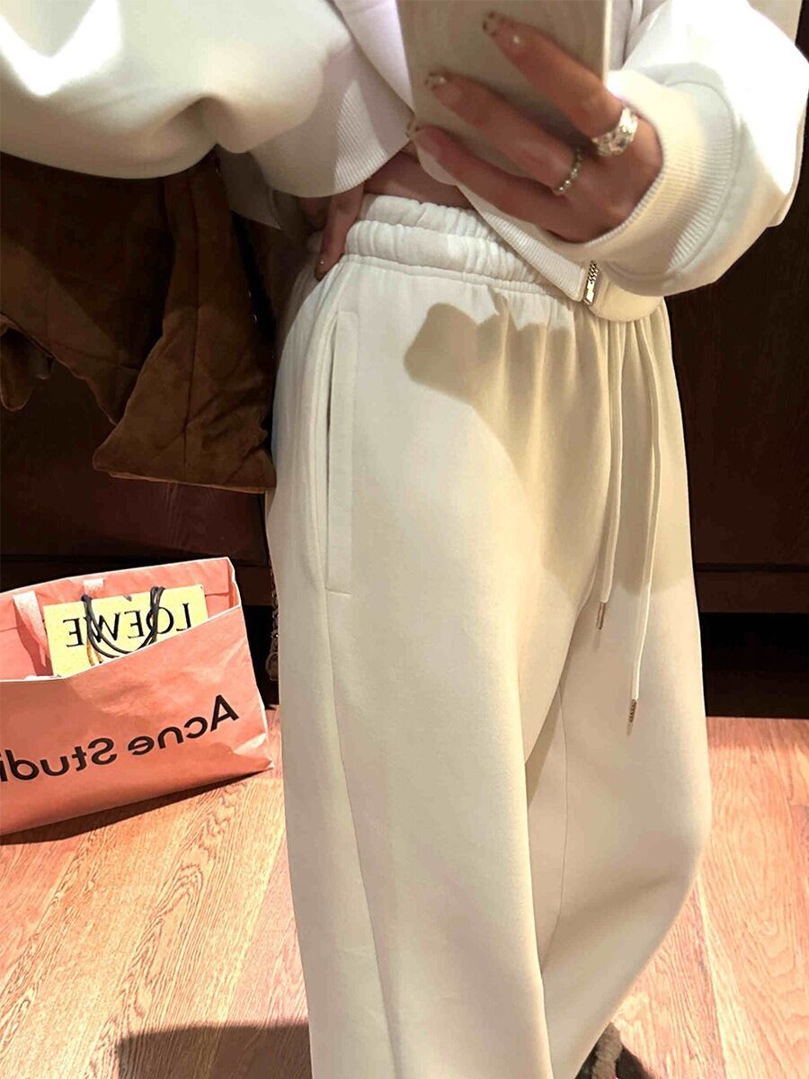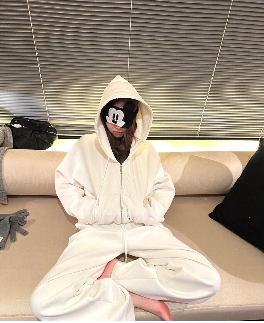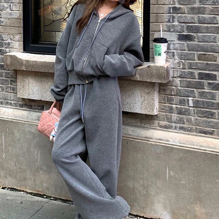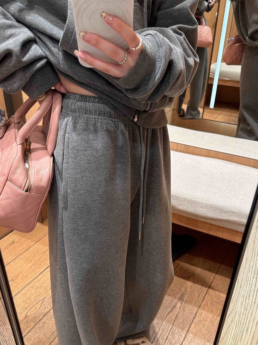 ドロップショルダーのゆったりトップスと、脚長効果のあるハイウエストストレートパンツの組み合わせで、部屋着でも抜かりないおしゃれを叶えます。
