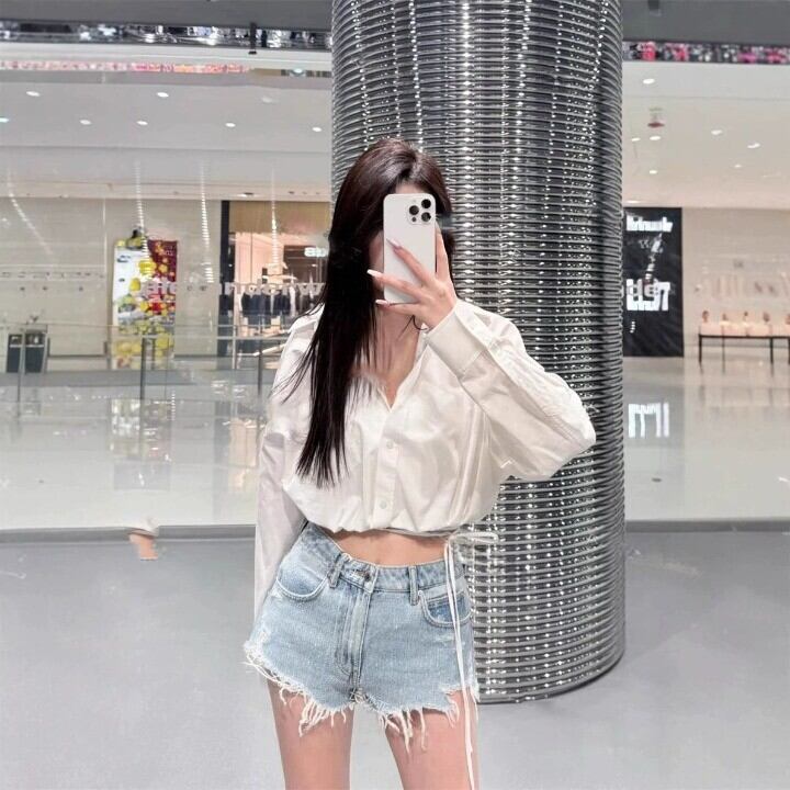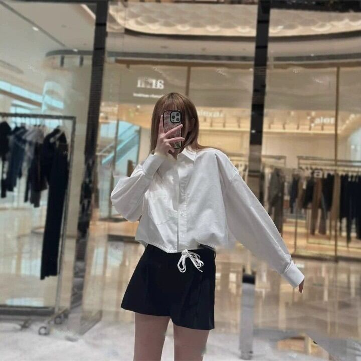 ミニマルながらも今っぽさ漂う、クロップド丈のシャツ。