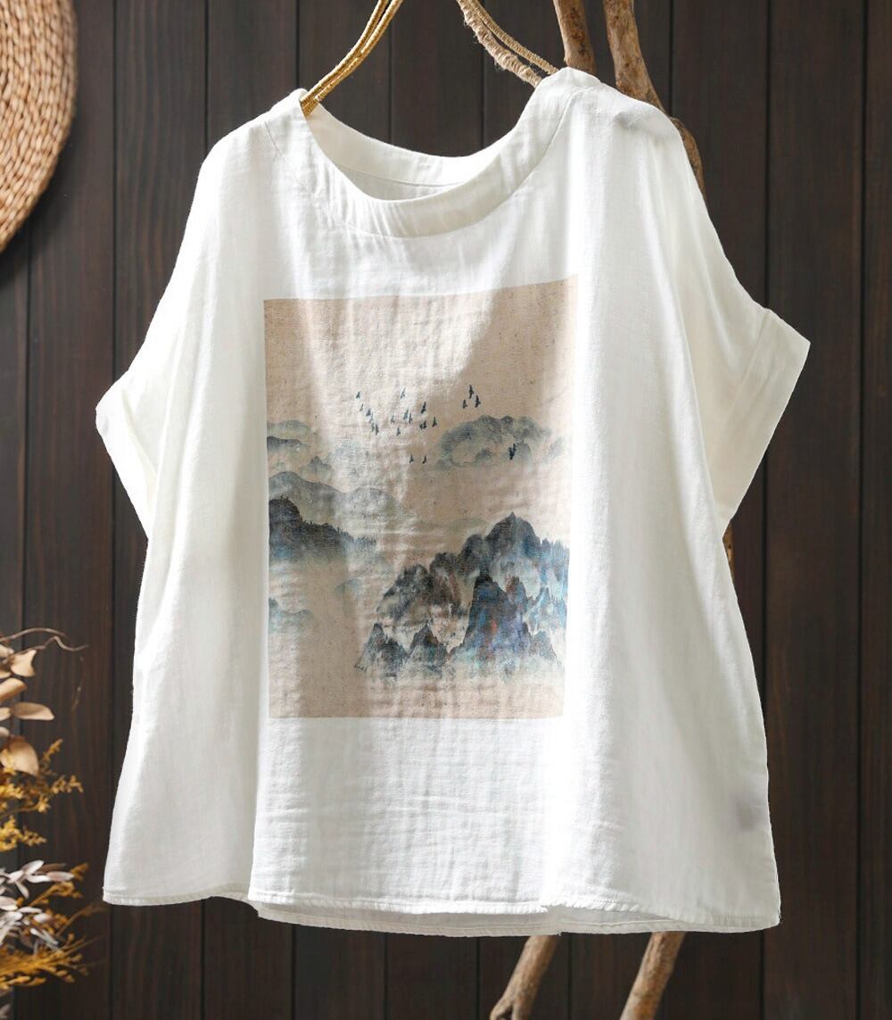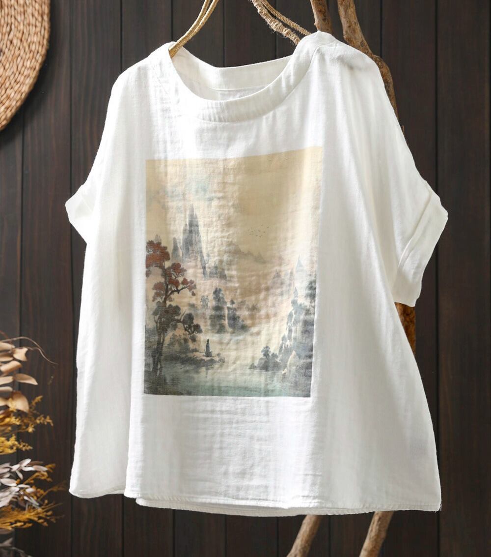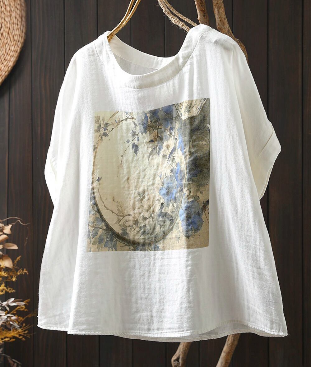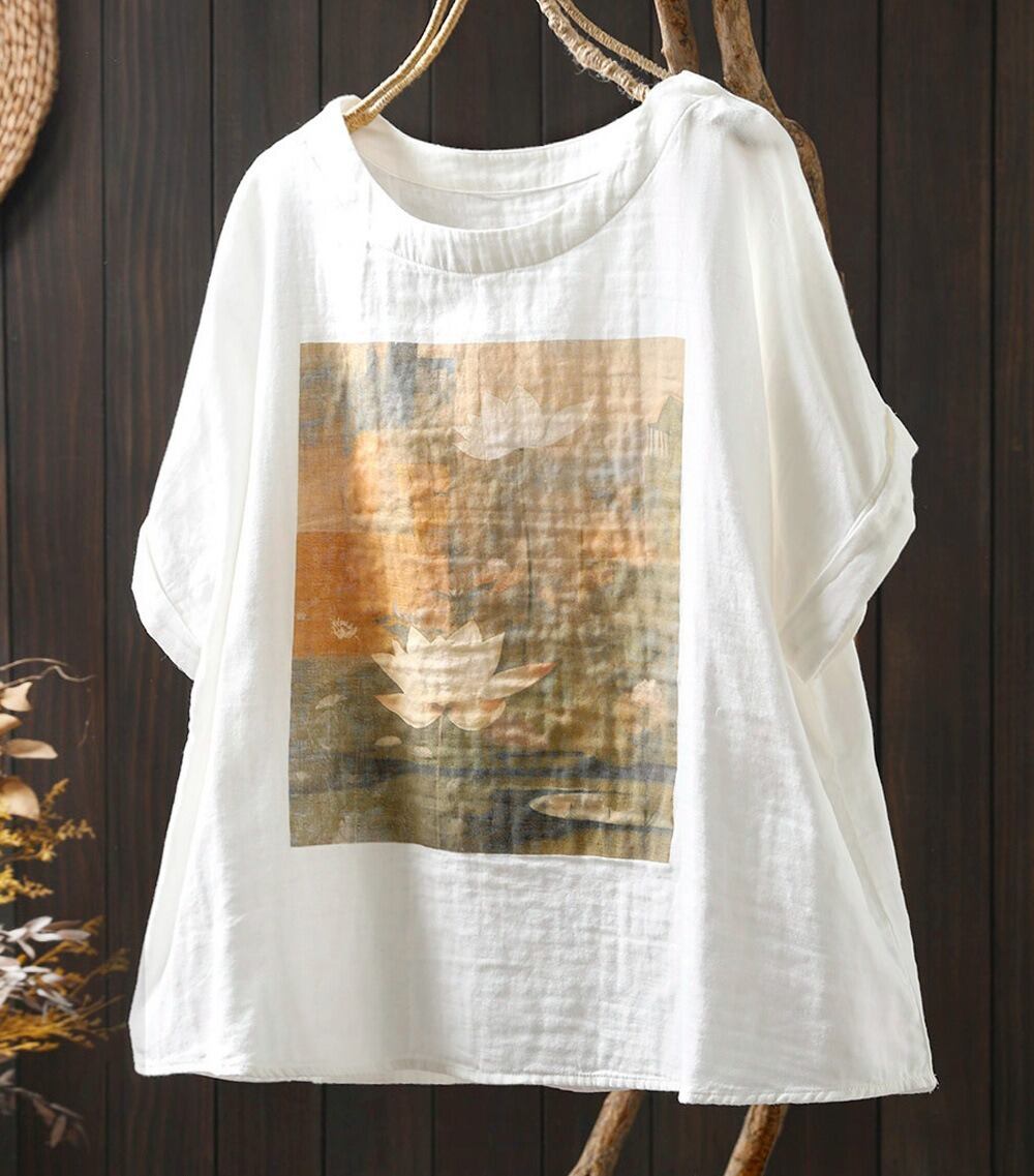 二層コットンのレトロなプリントが魅力のゆったりTシャツ。