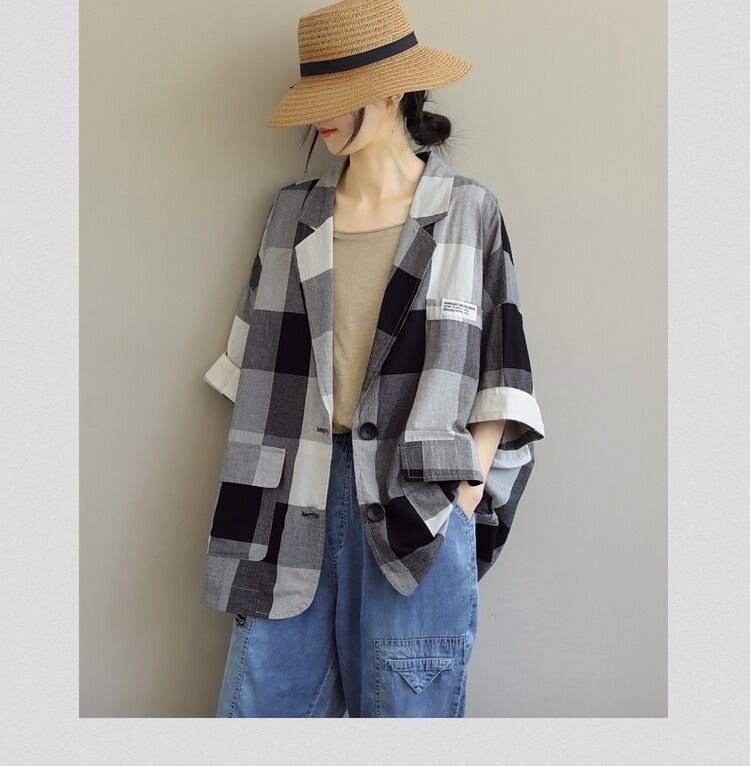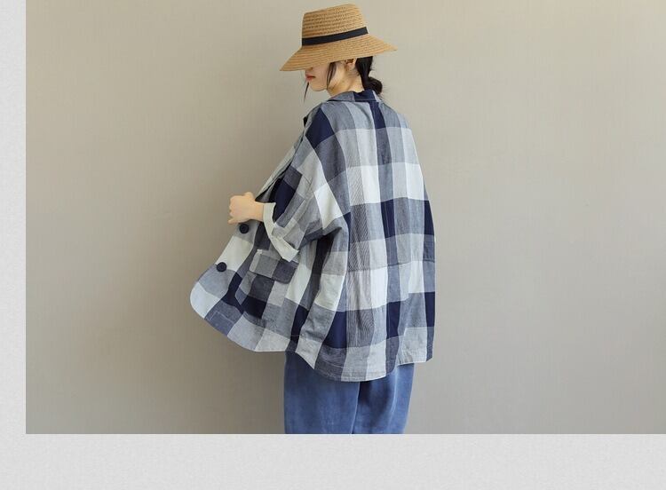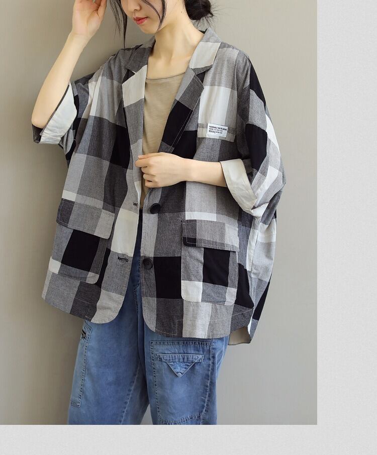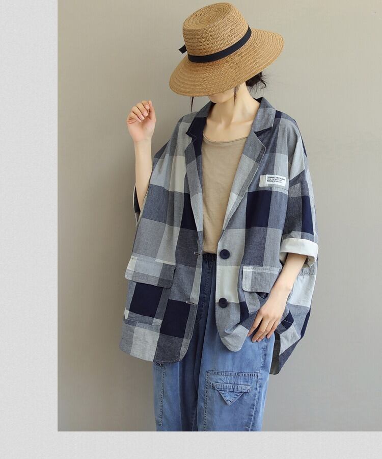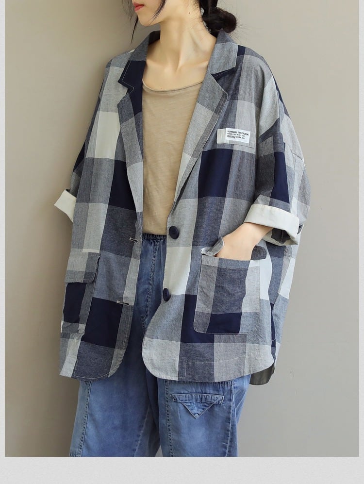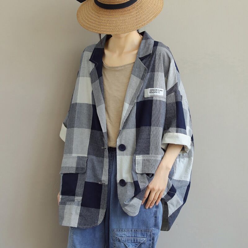 普通丈で7分袖のチェック柄のデザインは、シンプルでありながらもかわいらしさを忘れない仕上がり。