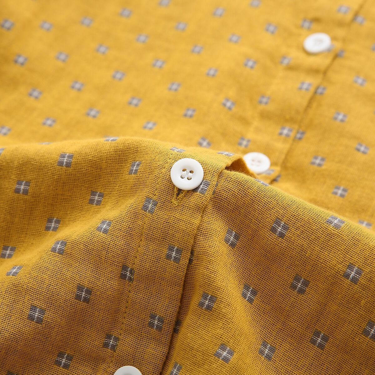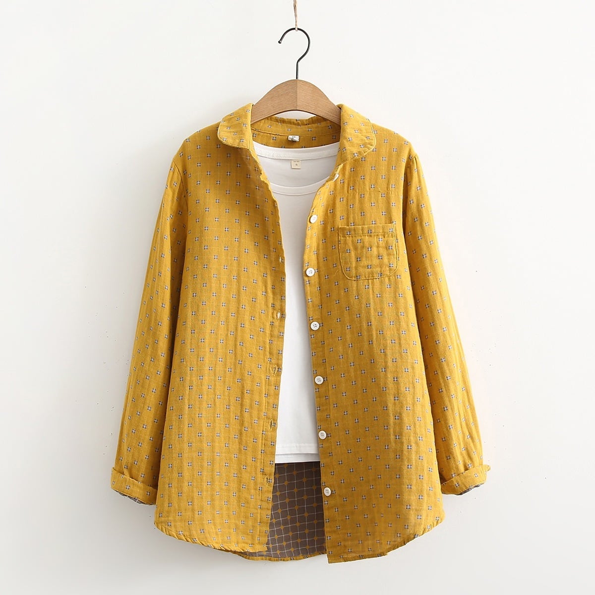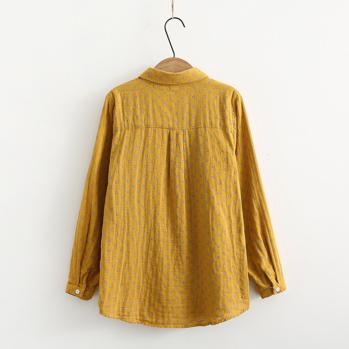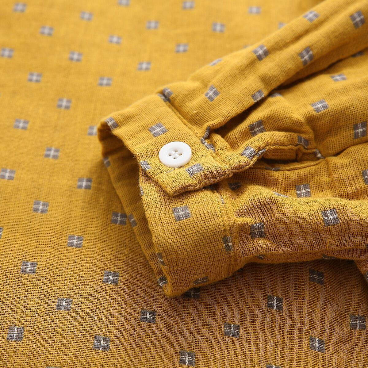 どこか懐かしくて新しい、レトロなプリントが魅力の丸襟シャツ。