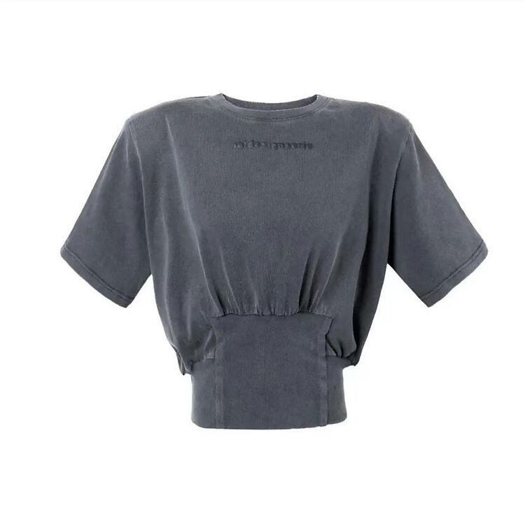 ウエストリブがアクセントになり、シンプルながらもこなれた雰囲気を演出。