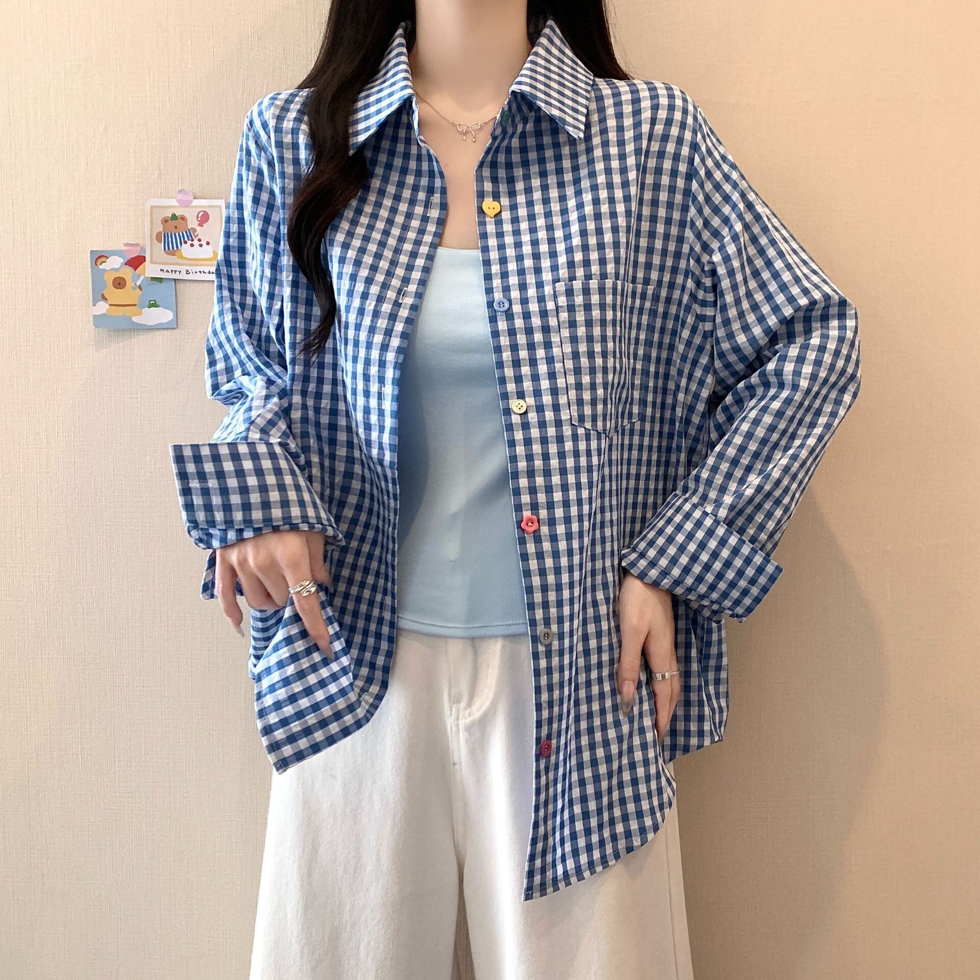 カラフルなボタンがアクセントになり、さりげない遊び心をプラス。