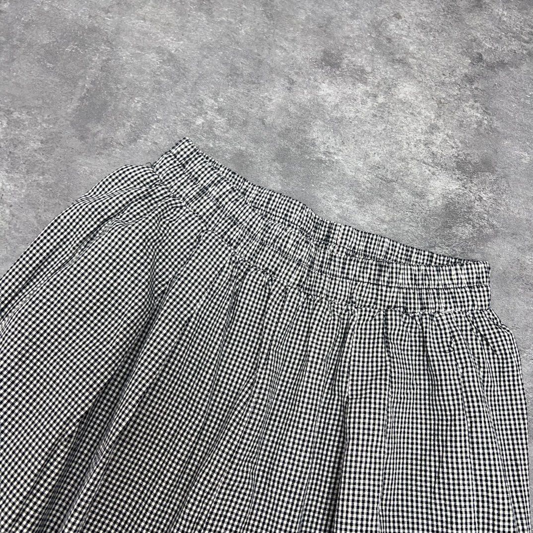 裾のギンガムチェックとフリル使いが、可愛らしさと大人の遊び心を演出します。