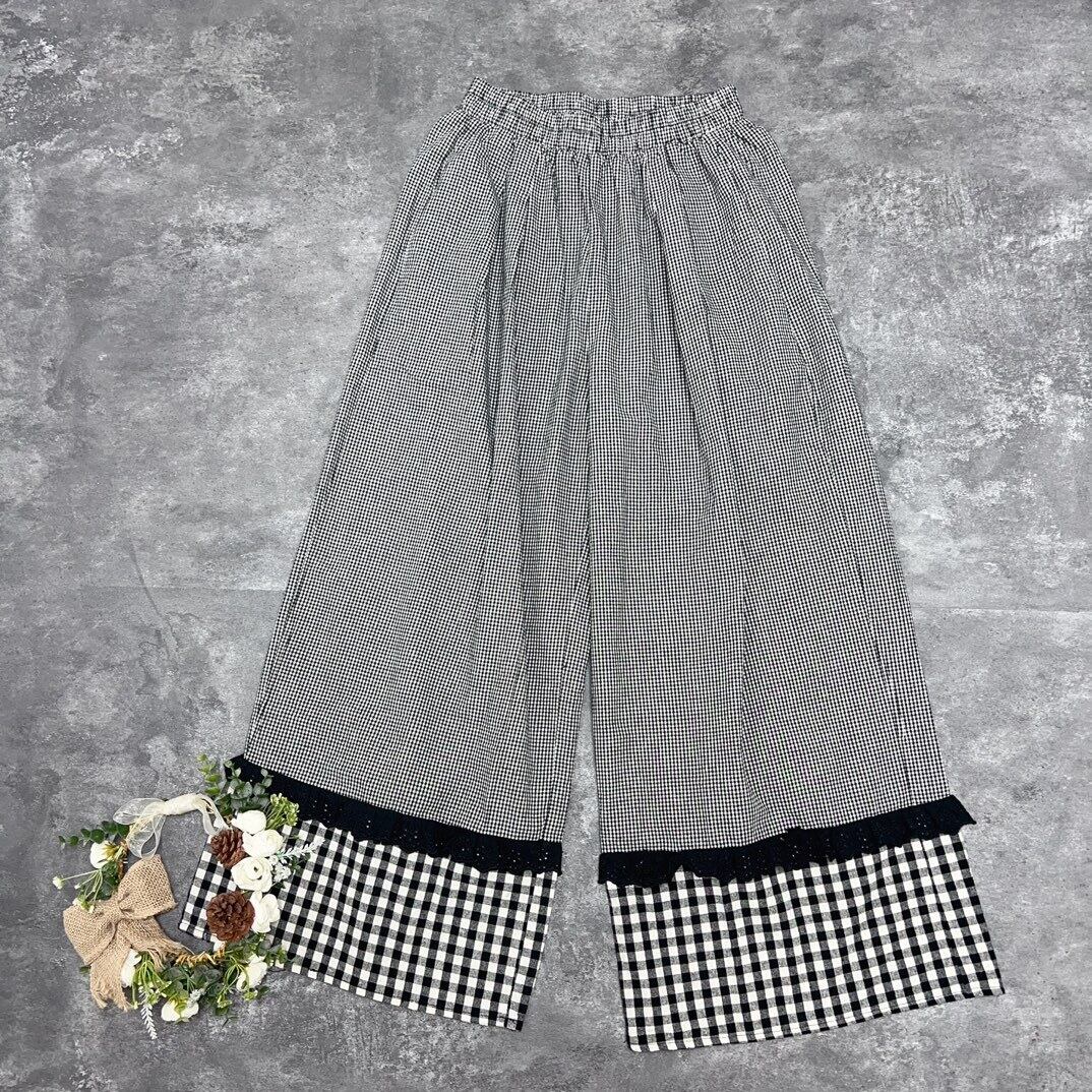 小さめチェックと大胆な切替デザインが目を惹く、主役級ガウチョパンツ。