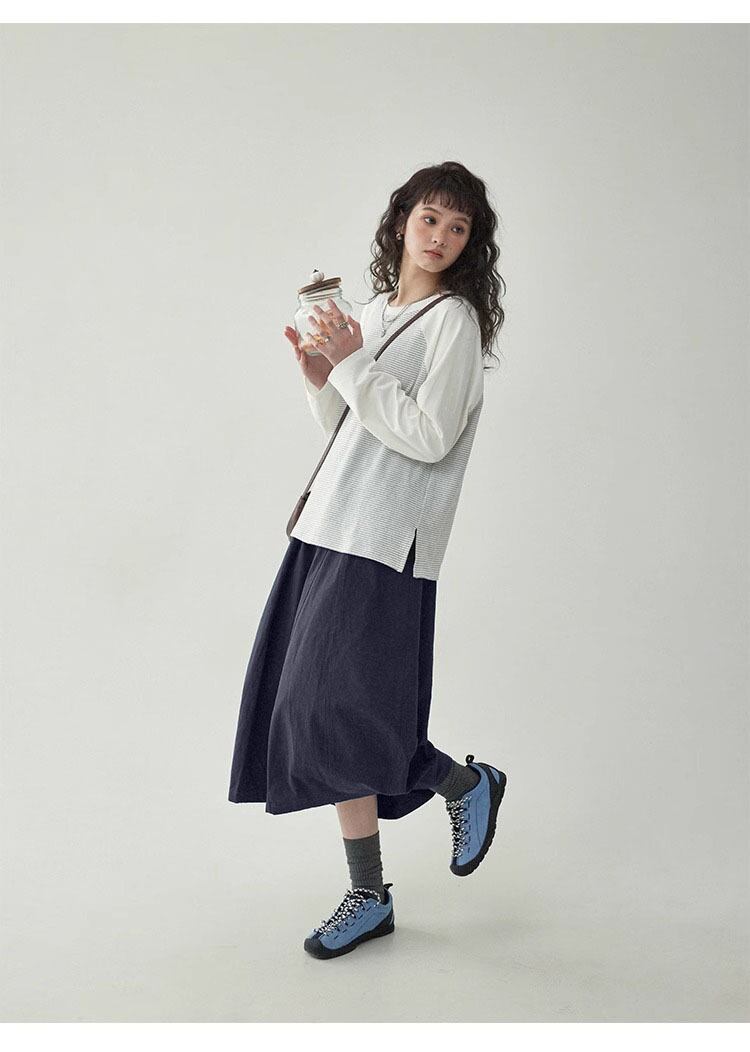 膝下のワイドフレアのデザインが特徴で、カジュアルながらも上品さを兼ね備えています。ウエストゴム仕様で楽ちんに着こなせ、体型カバーにも優れています。デートやお出かけ、通勤、さらに休日のショッピングにもぴったりの一枚です。