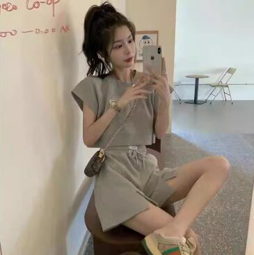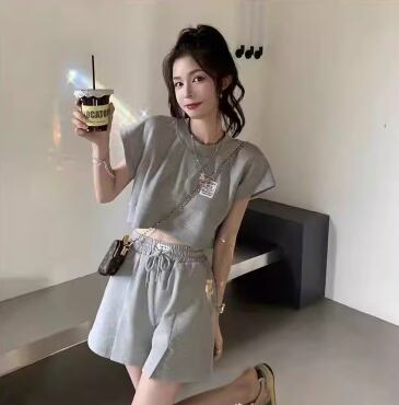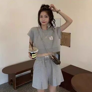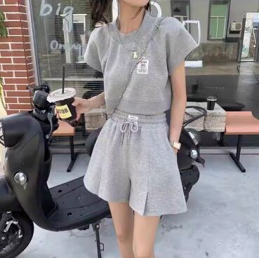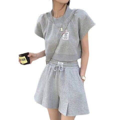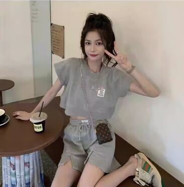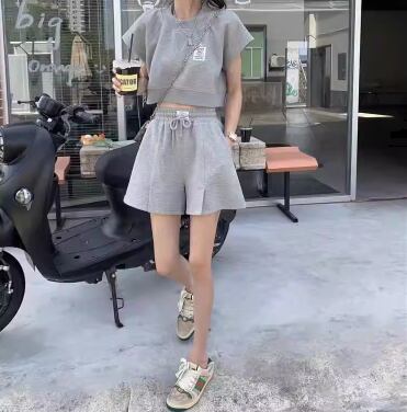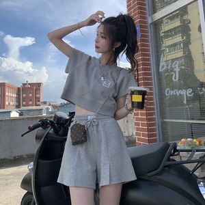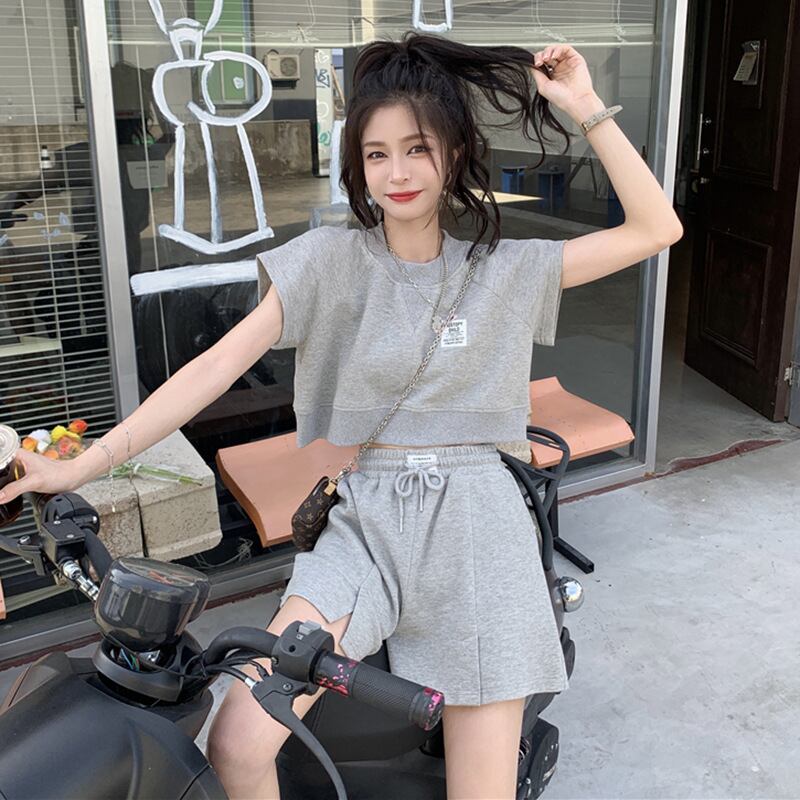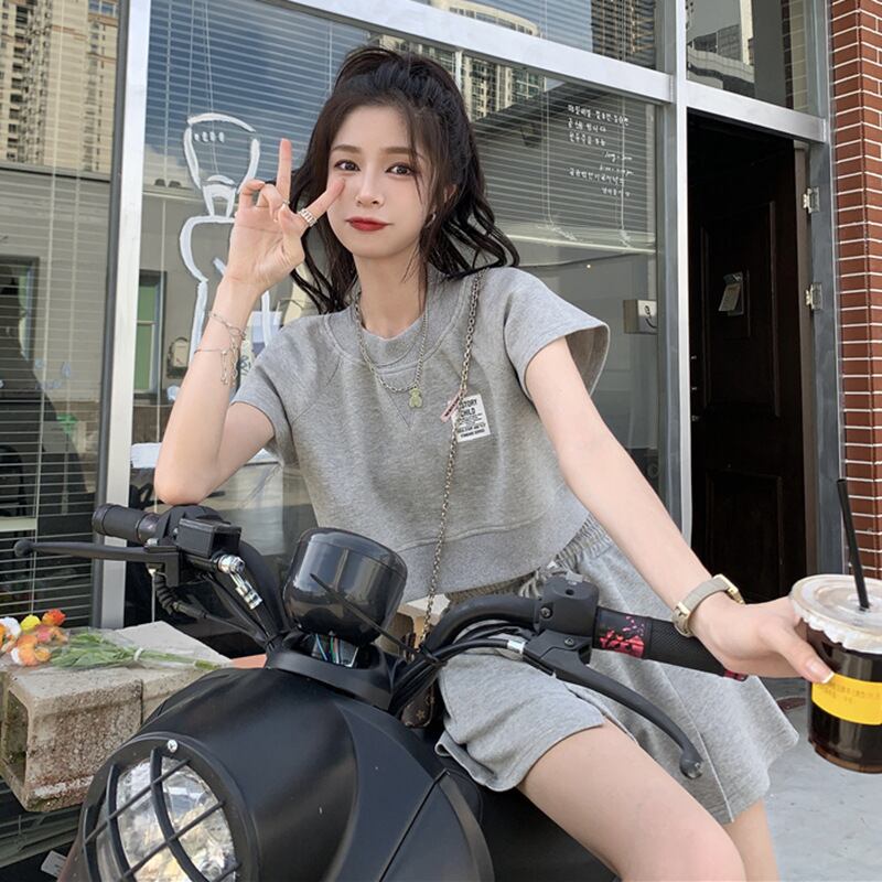 柔らかいスウェット素材で動きやすく、ショート丈トップスがスタイルアップ効果も◎