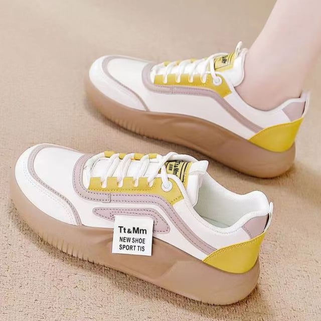ボリューム感のあるデザインが特徴で、カジュアルからスポーティーまで幅広いシーンで活躍。厚底3cmで脚長効果を演出し、美脚を追求したアイテムです!イエローとグリーンのカラーバリエーションが、どんなコーディネートにもぴったり馴染むレトロ可愛いデザインです。