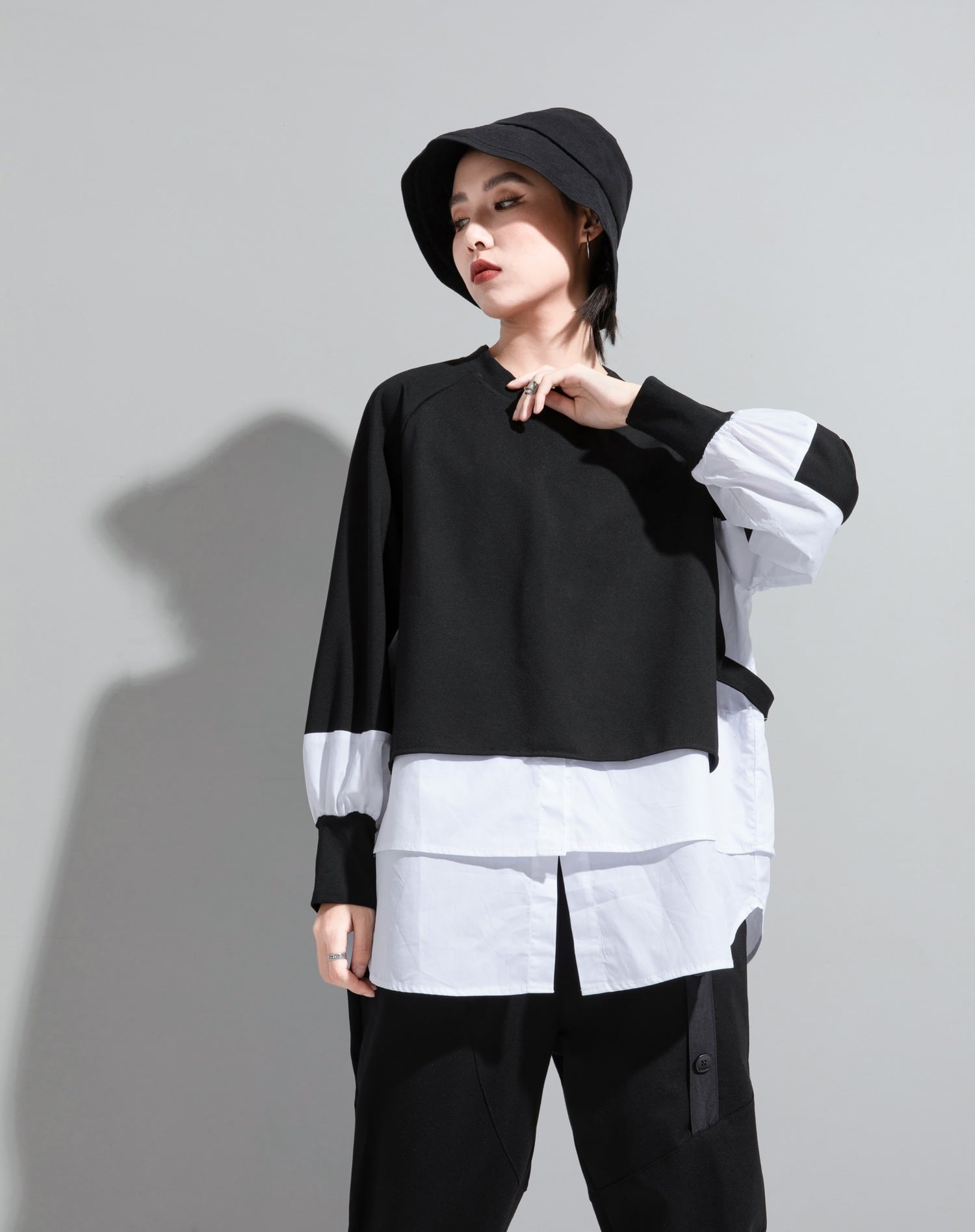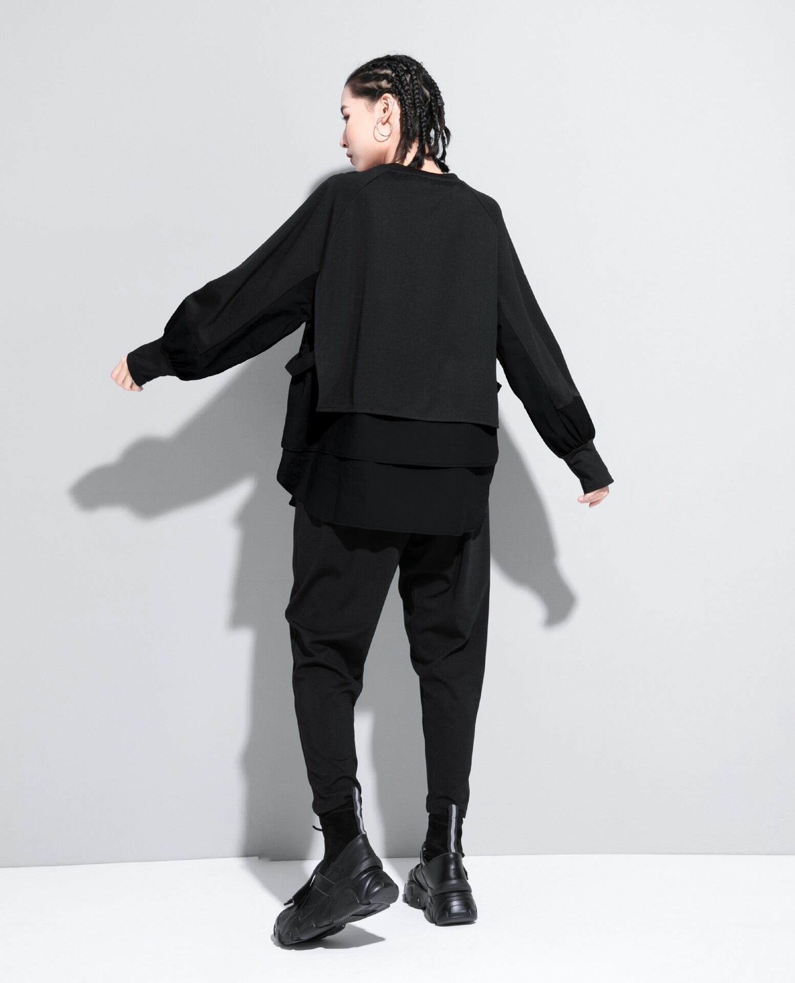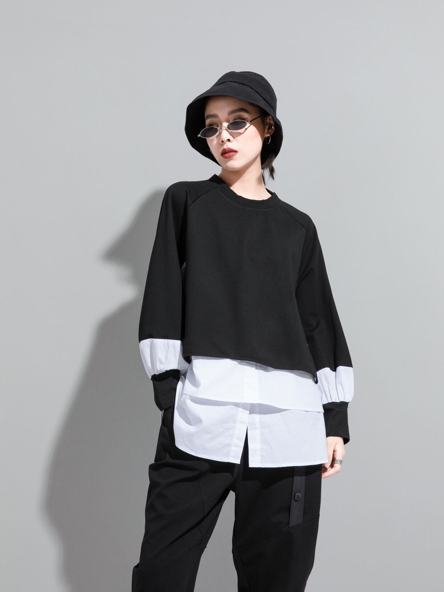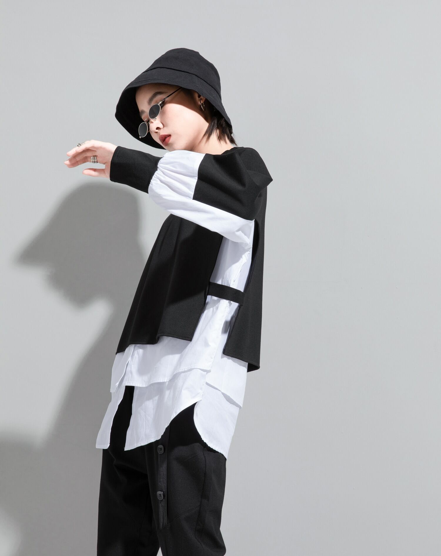 袖のふくらみや配色のコントラストも計算された、個性派モードスタイルにぴったりな一着です。