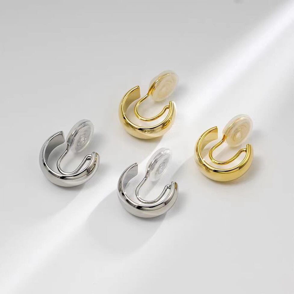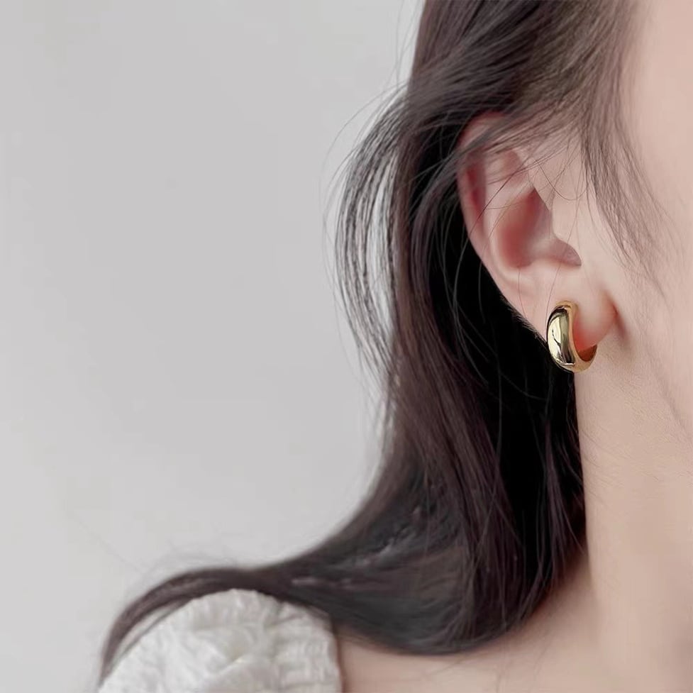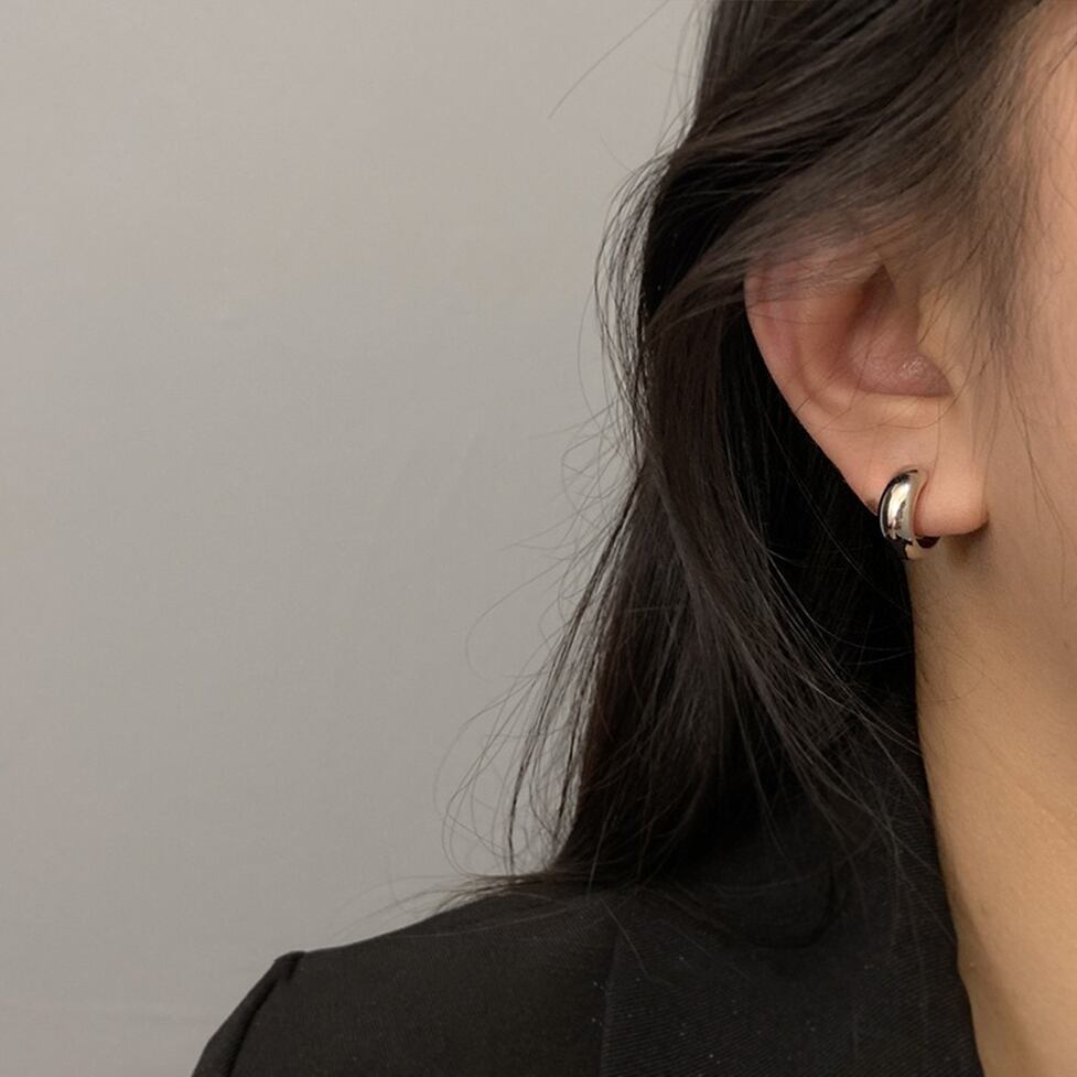 シンプルなスタイリングの整え役として欠かせないリングタイプのイヤリング。太く小さくすることでヴィンテージライクな存在感に