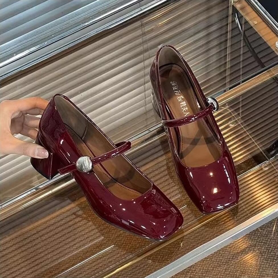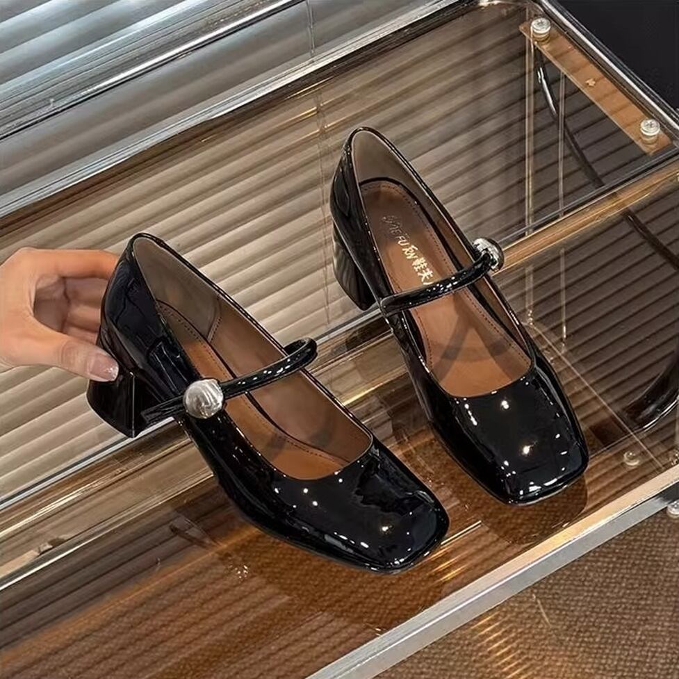 トラッドな雰囲気は残しつつ女性らしいエナメルストラップシューズ。太めのヒールでしっかりした安定感とコーデの着映えに一役。ストラップの大きめのボタンもアクセントです