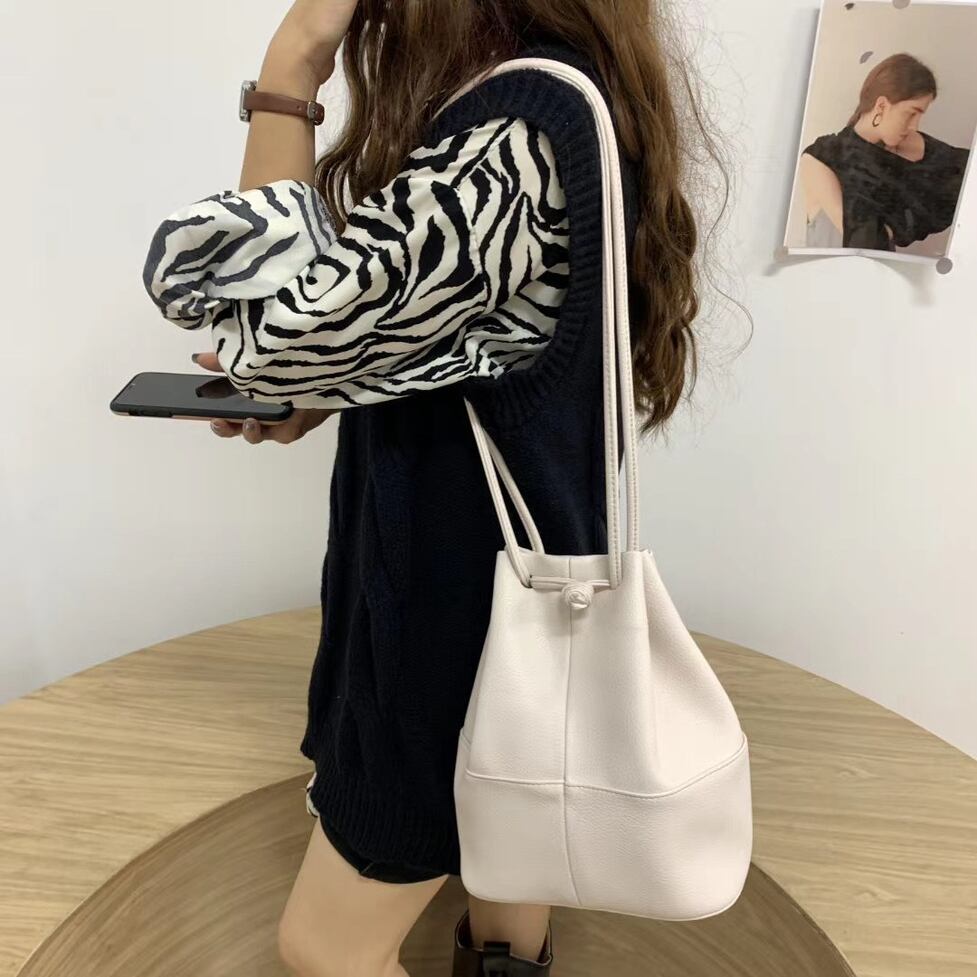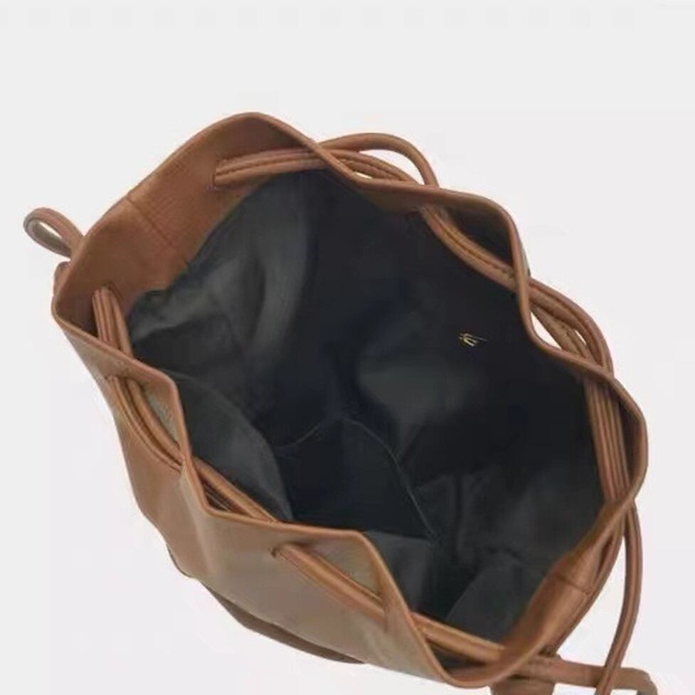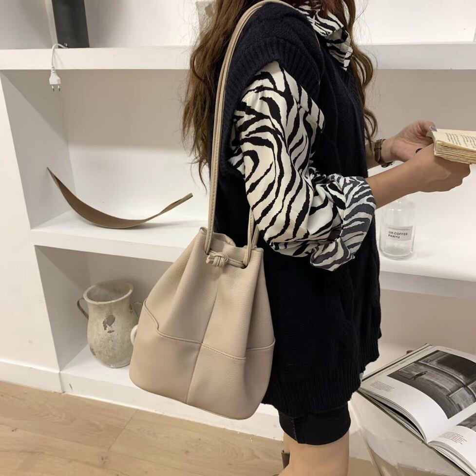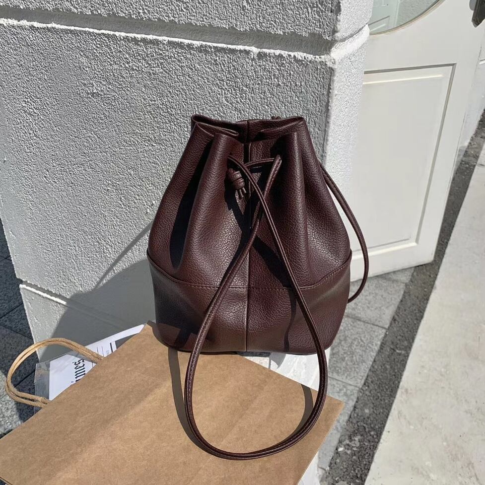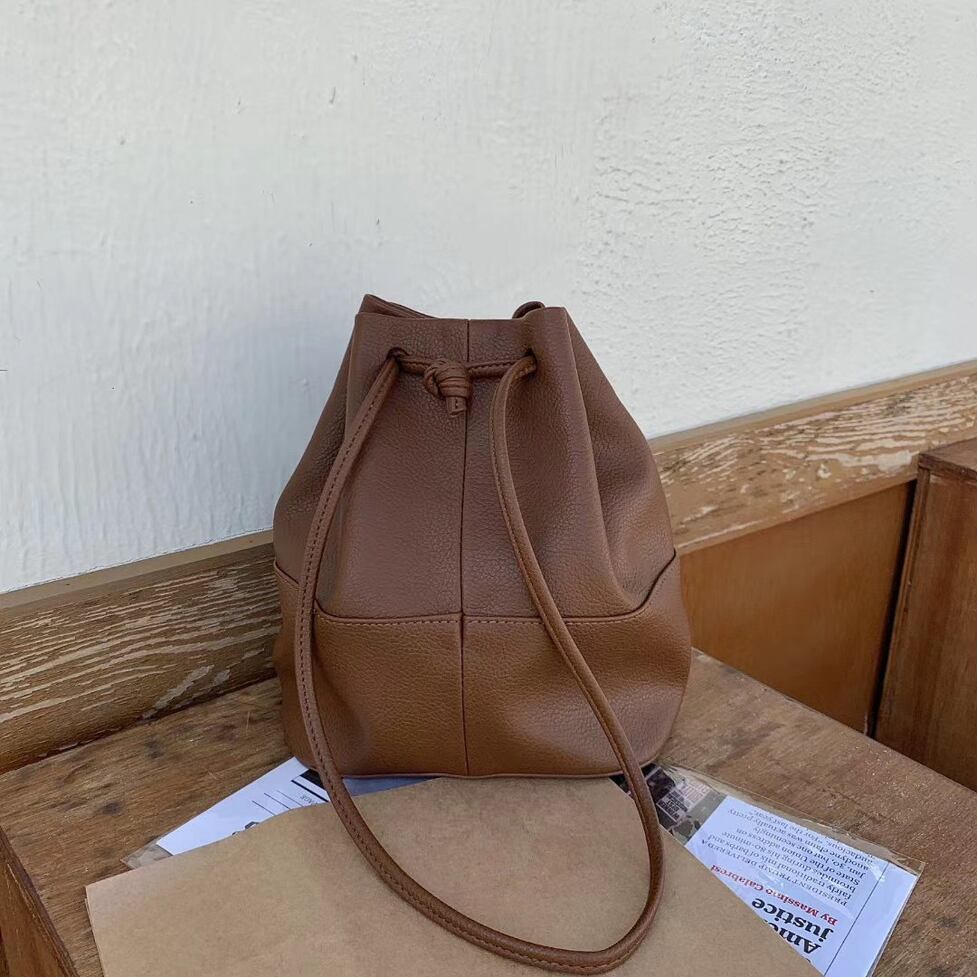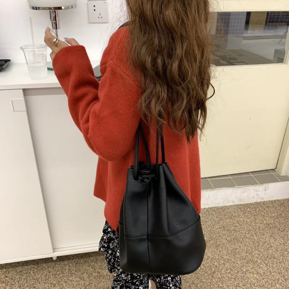 コーディネートの角を取るアクセサリー感覚で持てる巾着バッグ。シャツやジャケットなどかちっとした装いでも力が抜ける特有のフォルム。愛嬌のある風合いがコーデに抜け感をプラス