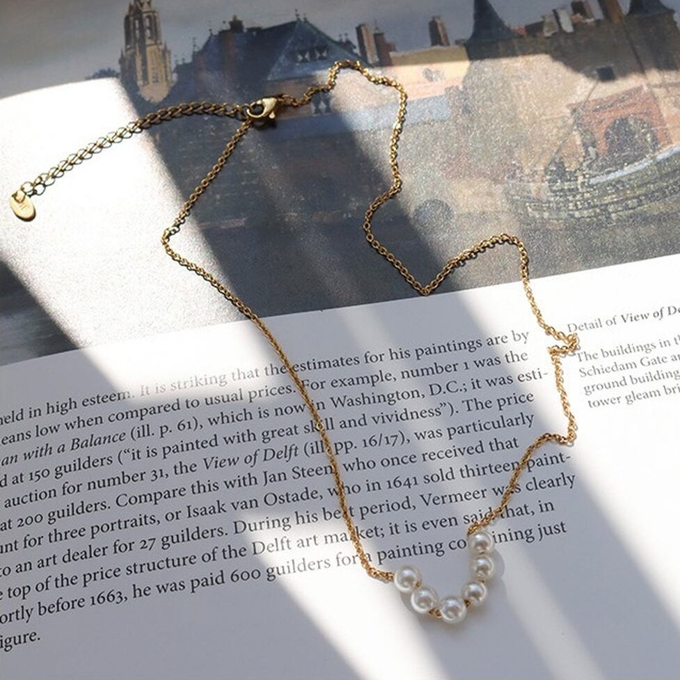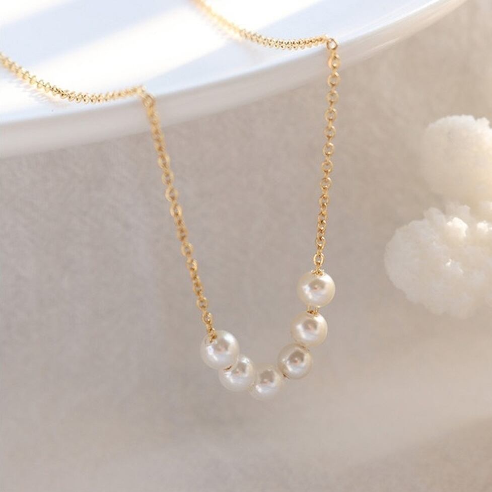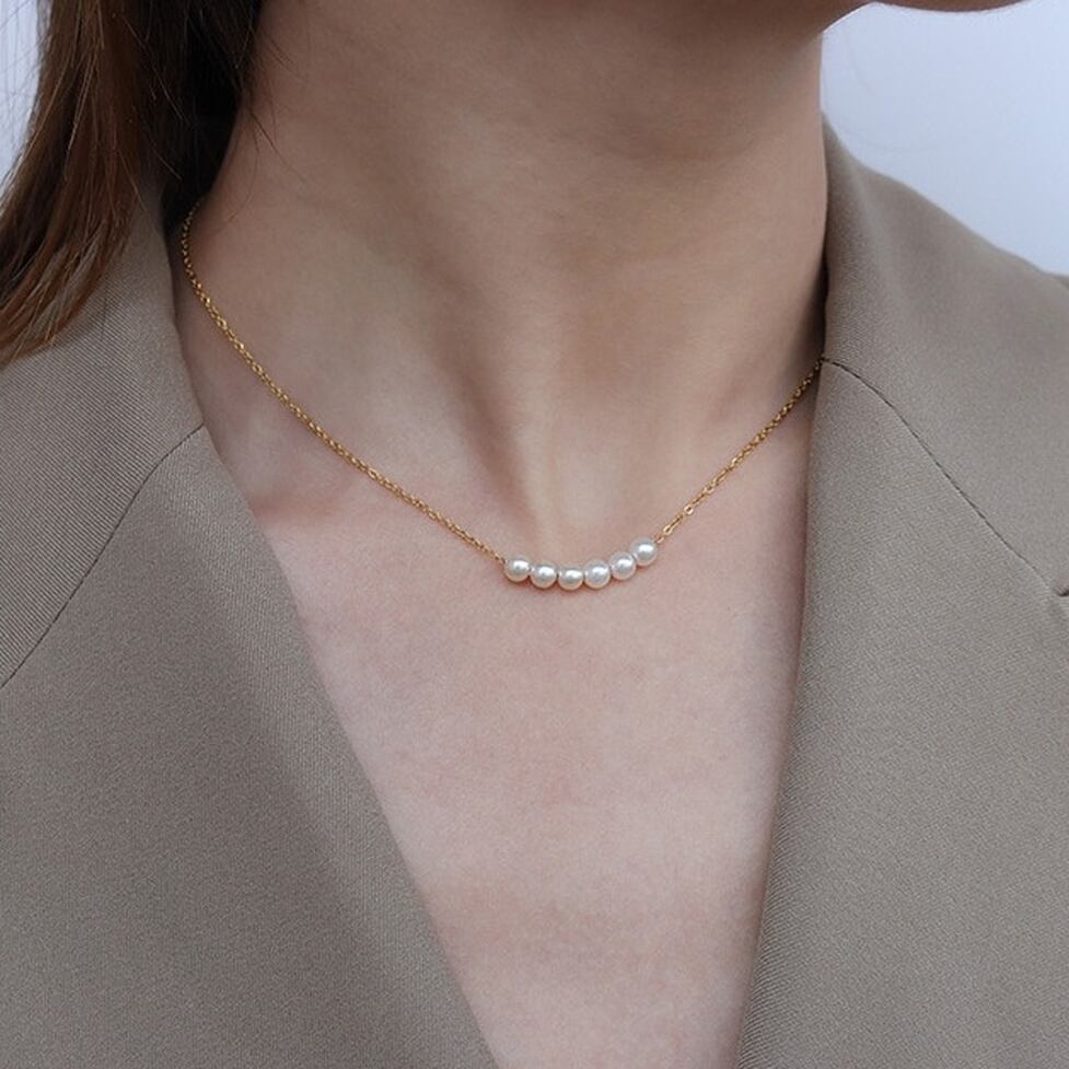 コーデに品格を足してくれるパール付きゴールドチェーンネックレス。エレガントに使っても敢えてメンズっぽいコーデに飾っても服を引き立たせるドレスアップを演出