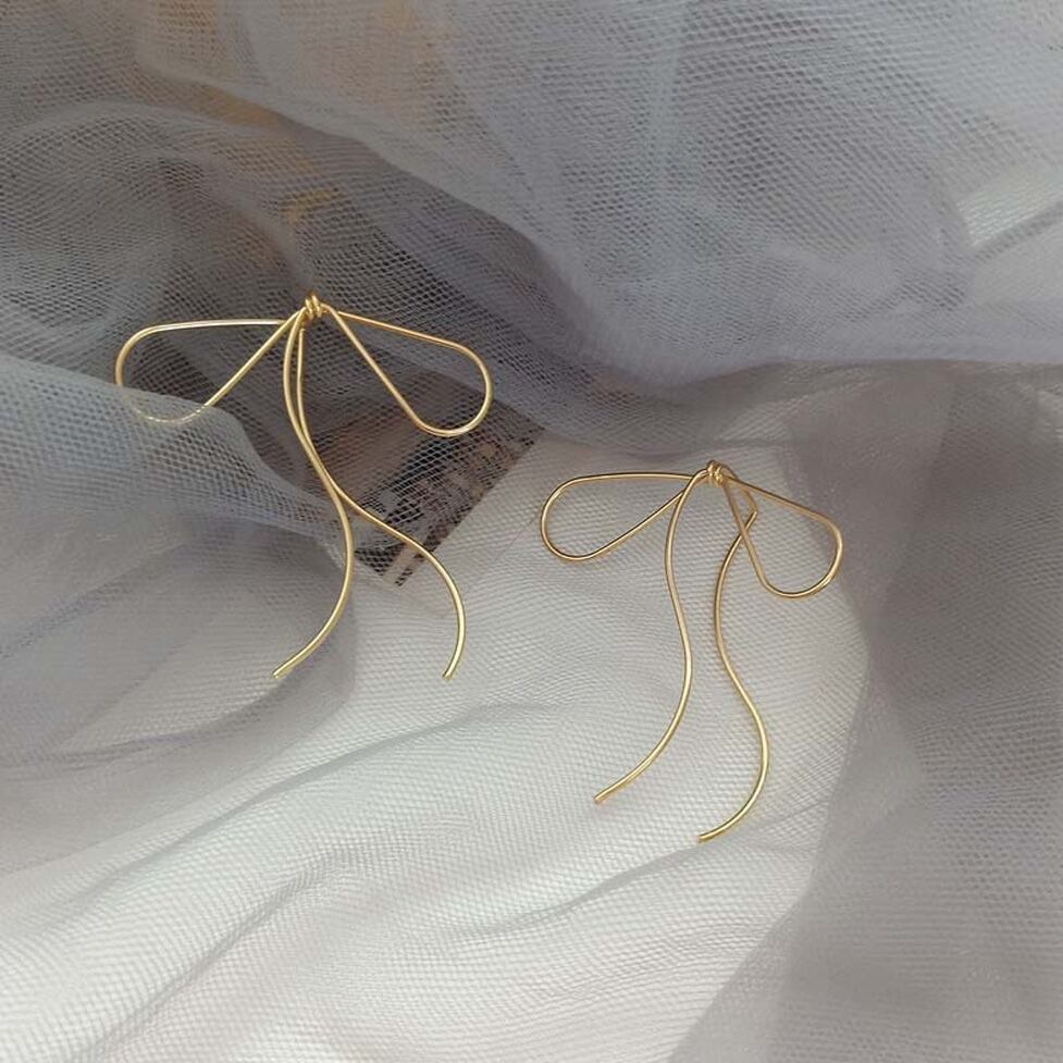 踊るような曲線が特徴の細リボンモチーフピアス。意図のある装飾でコーデの完成度を確かなものに。糸のように繊細にきらめく様子が女性らしさを高めてくれます