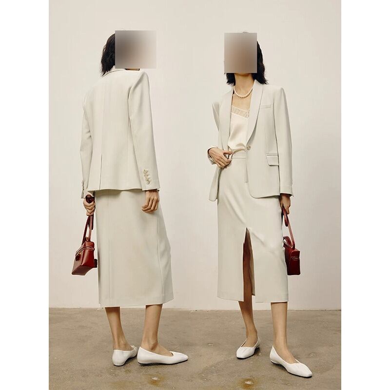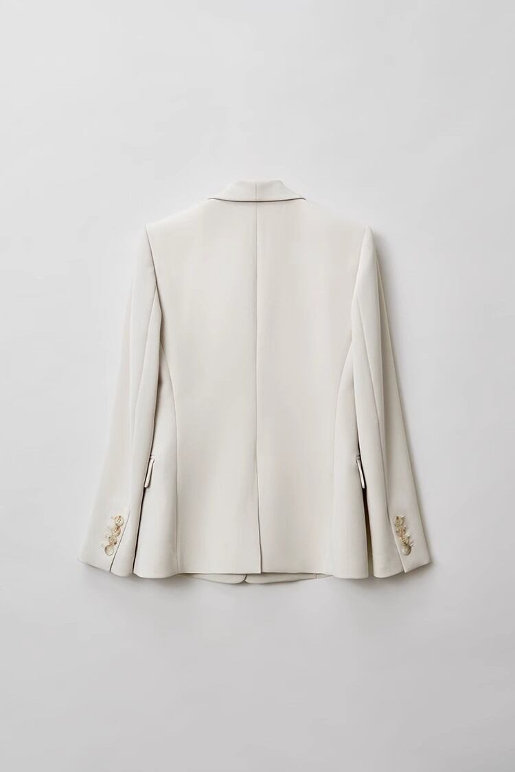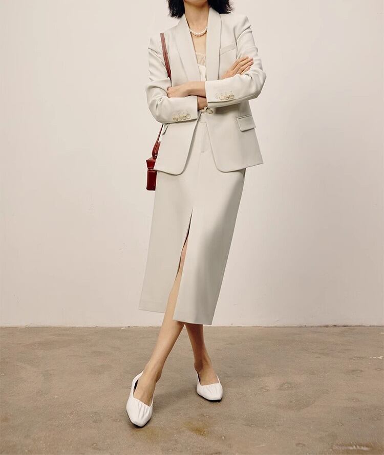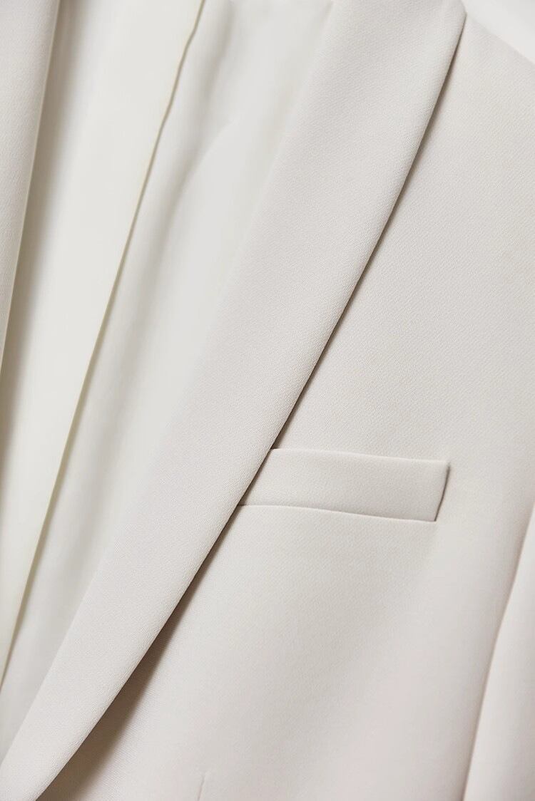 知的さと抜け感を両立する、オフホワイトのテーラードジャケット。