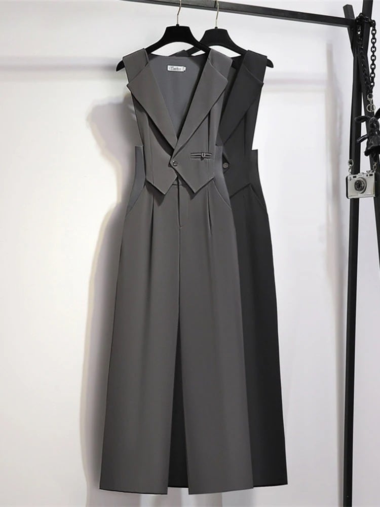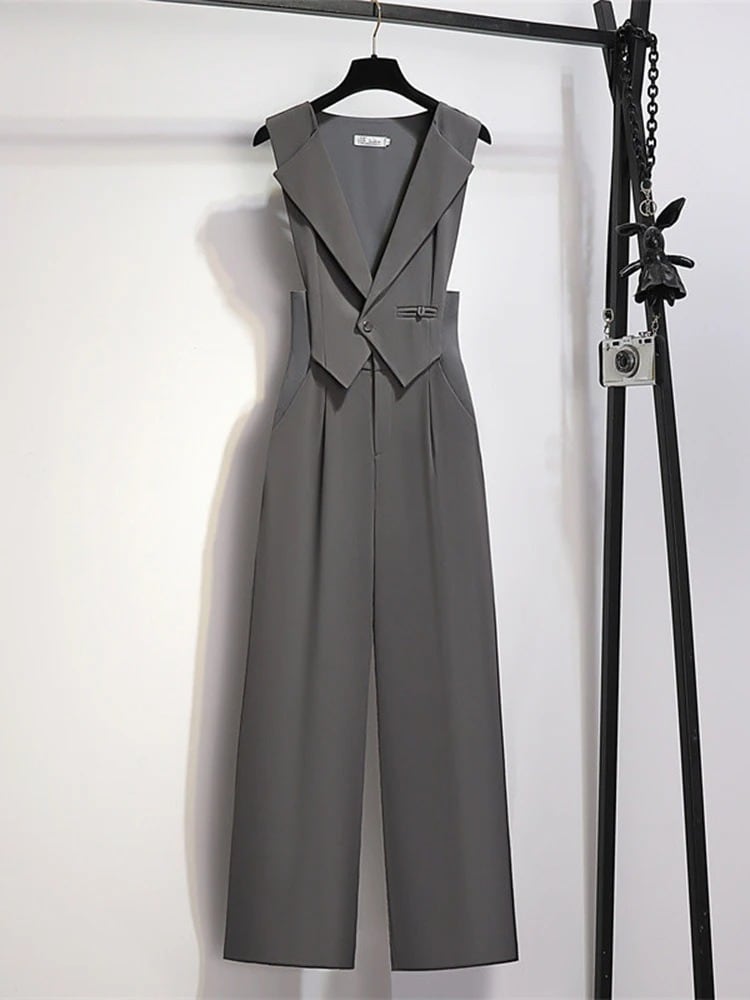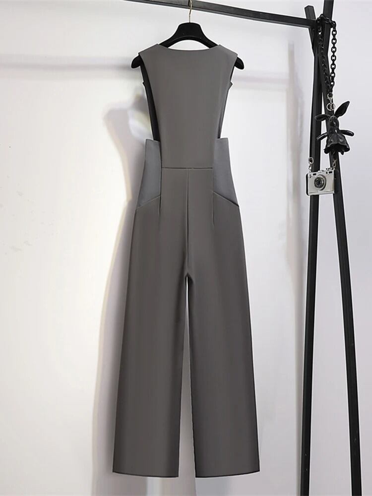 Vネック×ハイウエストでスタイルアップが叶う、上品見えオールインワン。