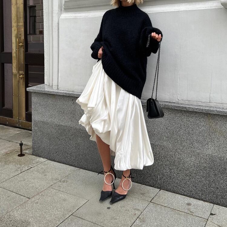 ふんわりとボリュームのあるシルエットが魅力の、大人可愛いバルーンスカート。