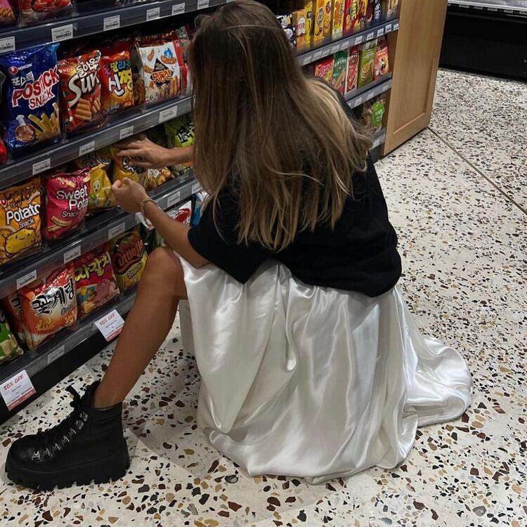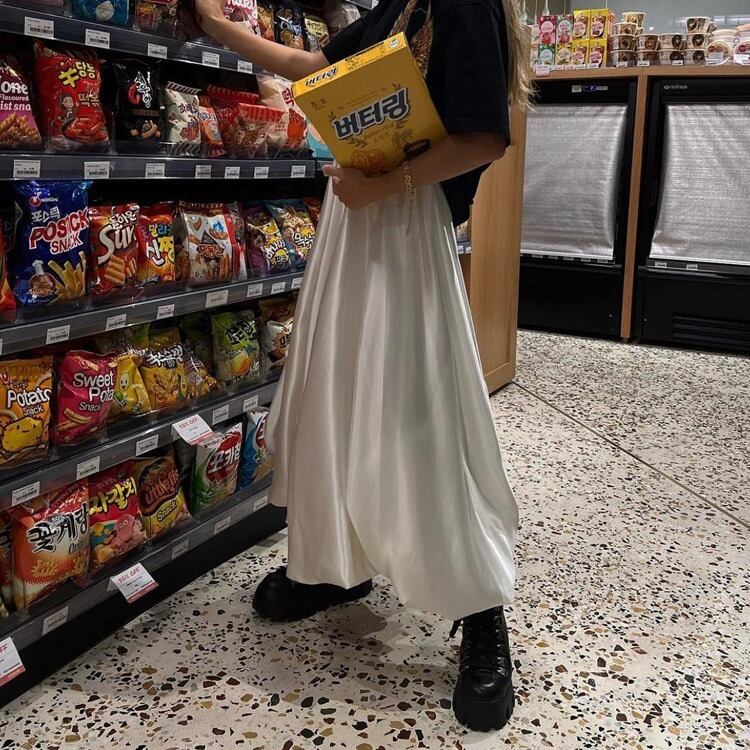 マキシ丈とハイウエストデザインで、気になる体型もさりげなくカバーします。