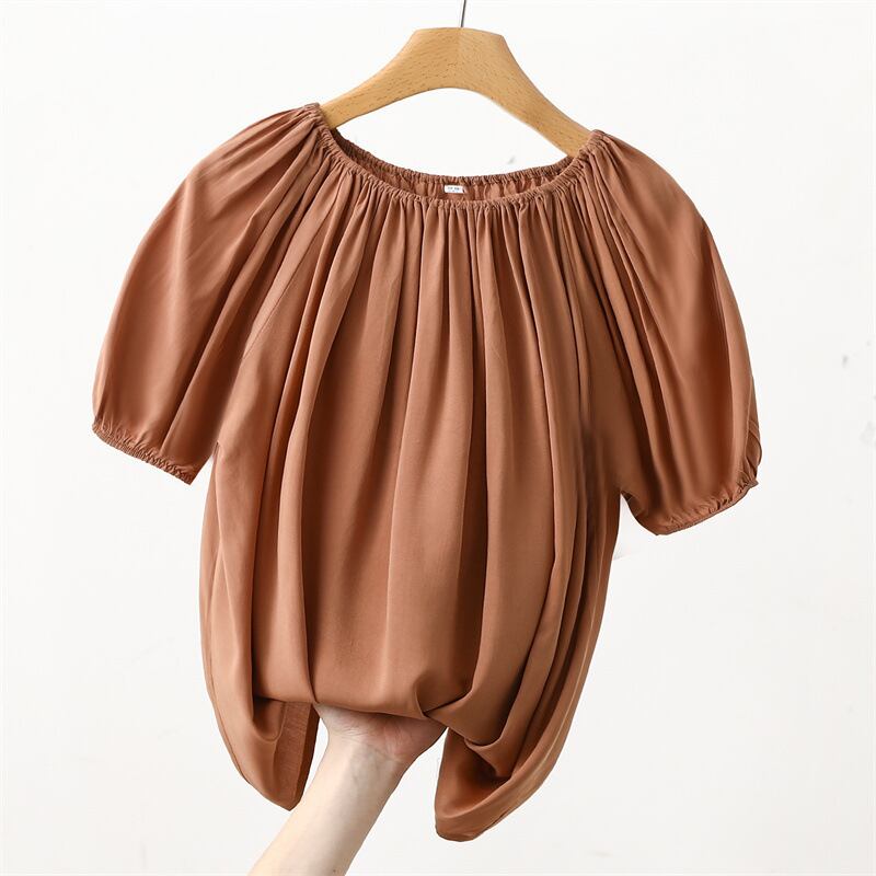 ふんわりとしたシルエットが女性らしさを引き立てる、夏に映えるパフスリーブブラウス。