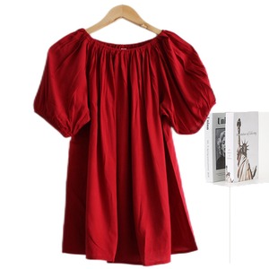 さらりとした素材感で着心地も軽やか。首まわりはゴム仕様で、オフショル風にもアレンジ可能。