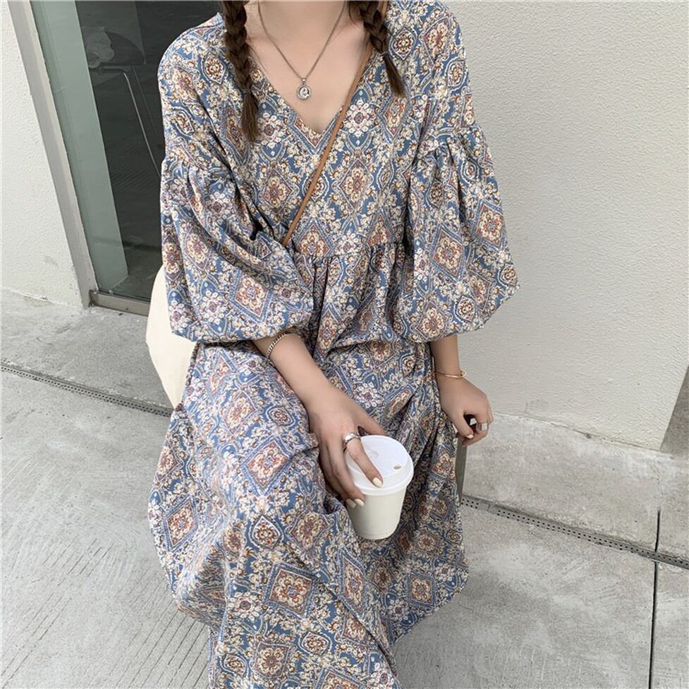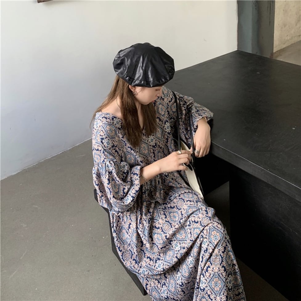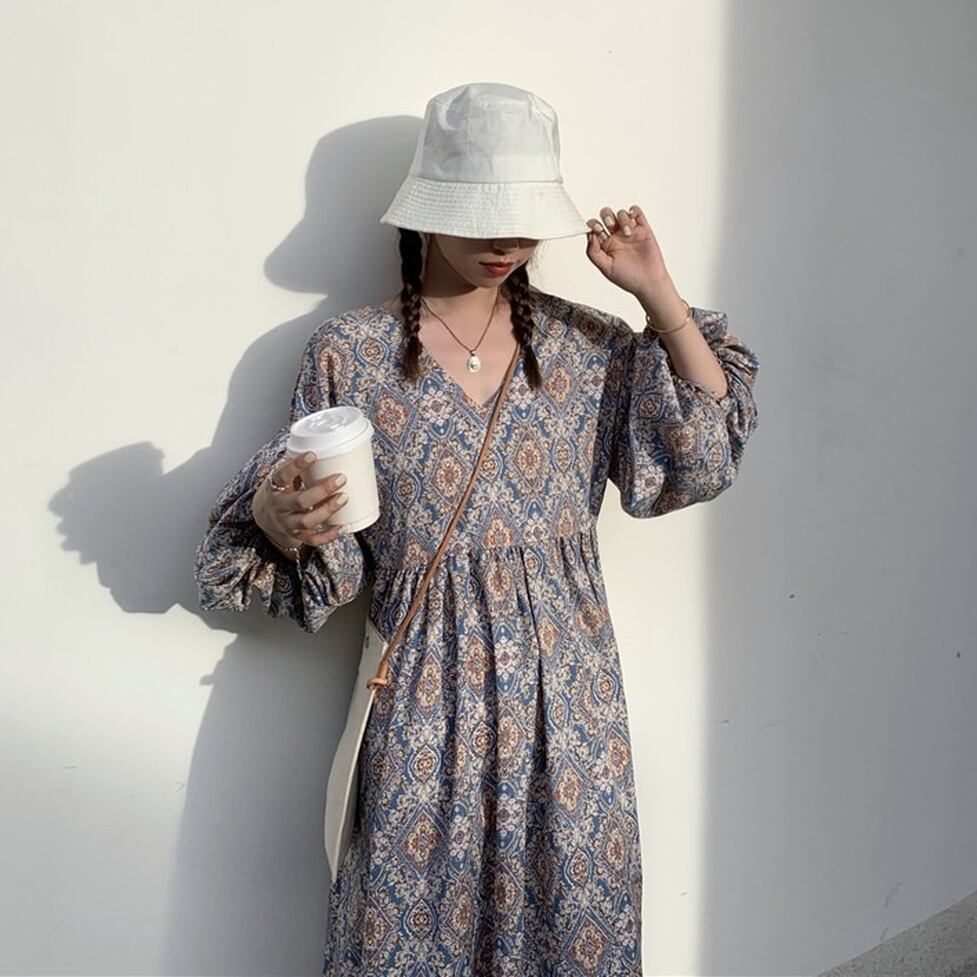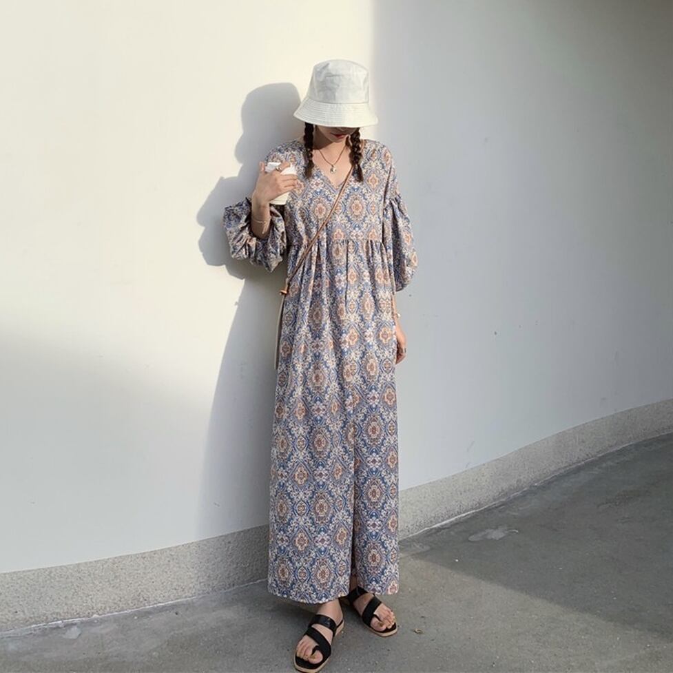 行儀よく並べられたボタニカルな花柄モチーフ。アーティな模様で品のいいなつかしさを身にまとえる1枚。リラクシーなオーバーシルエットに可愛いボリューム袖が体型をカバーして安心な着心地