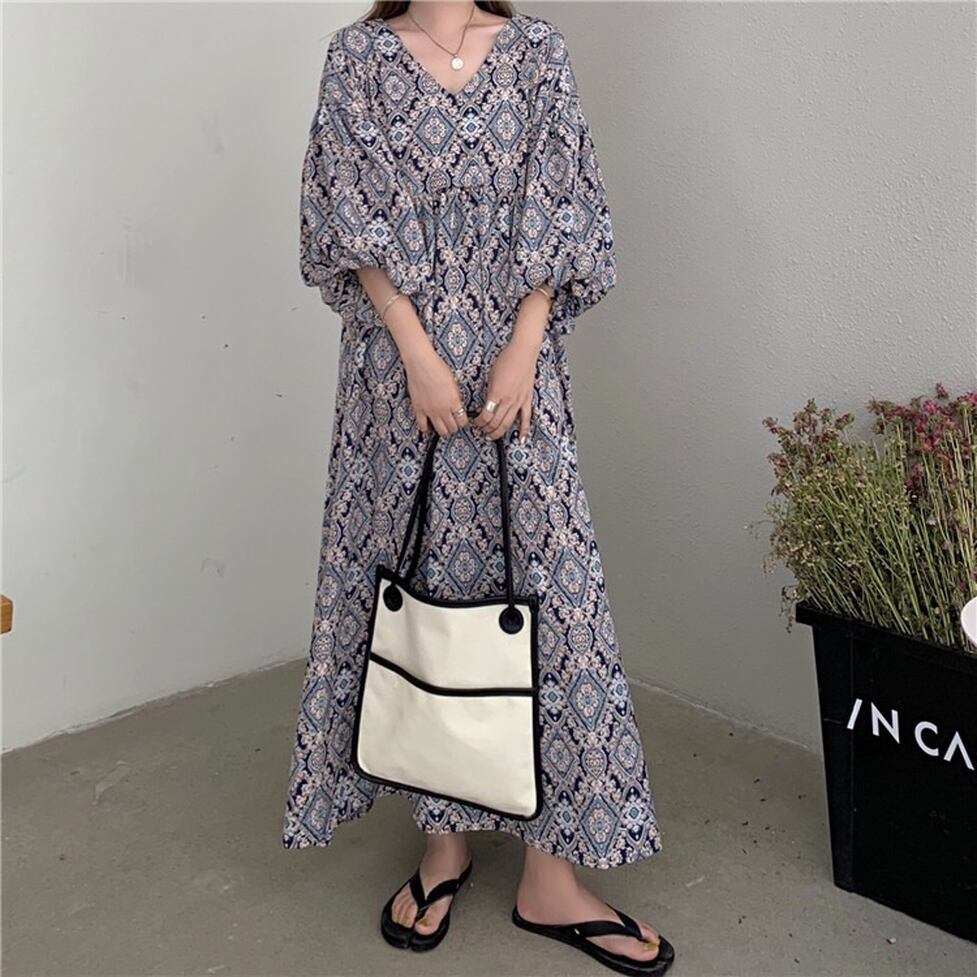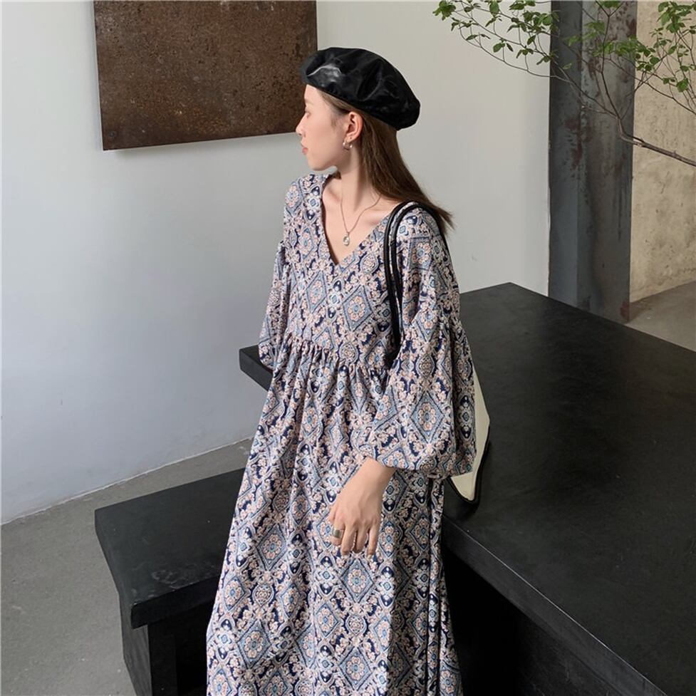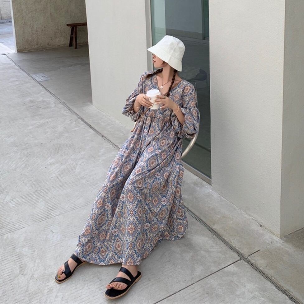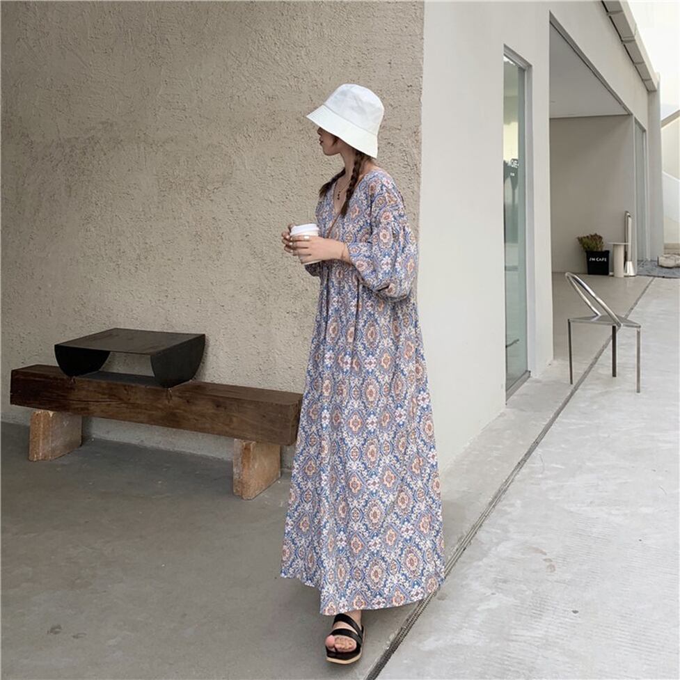 行儀よく並べられたボタニカルな花柄モチーフ。アーティな模様で品のいいなつかしさを身にまとえる1枚。リラクシーなオーバーシルエットに可愛いボリューム袖が体型をカバーして安心な着心地