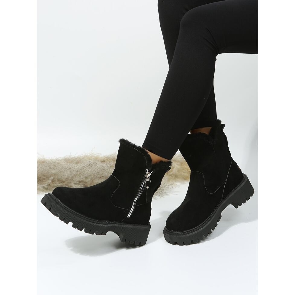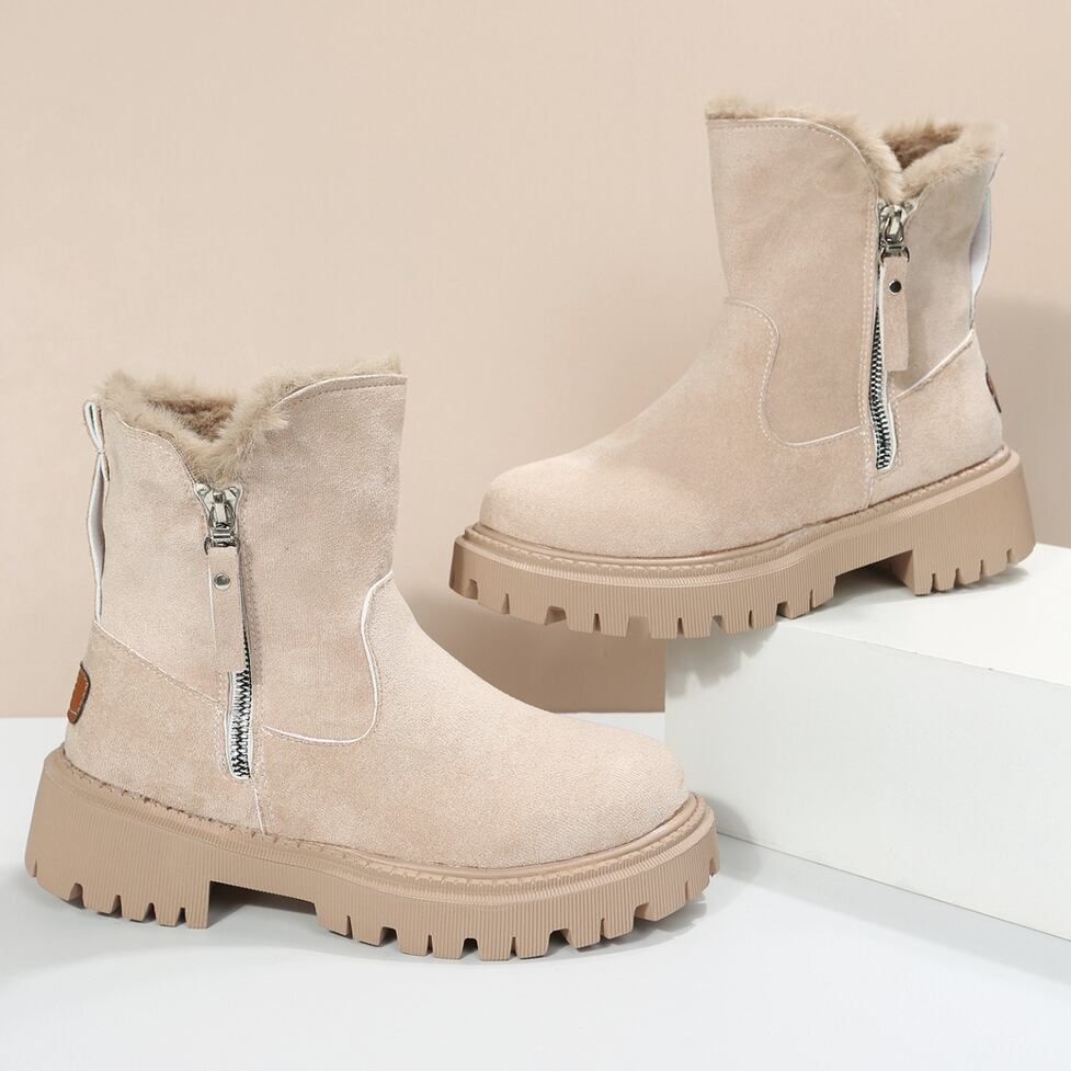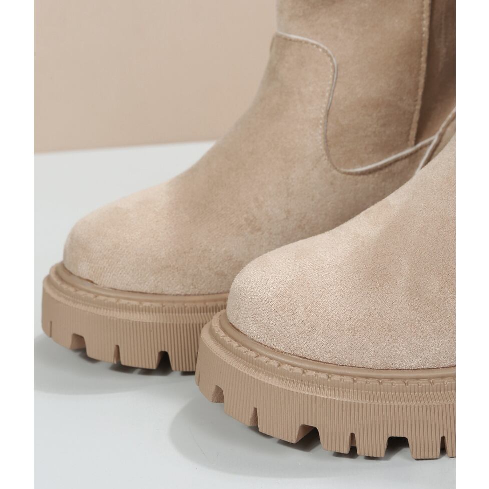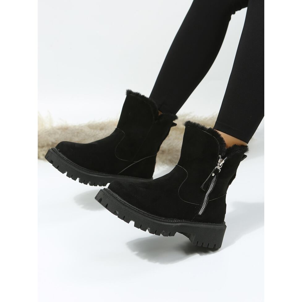 ボリュームのあるシルエットで存在感のあるスエード調のショートブーツ。履き口のボアが品の良さをプラス。フラットだから幅広いコーデのスパイスにおすすめ。モードな足元を飾ってくれます