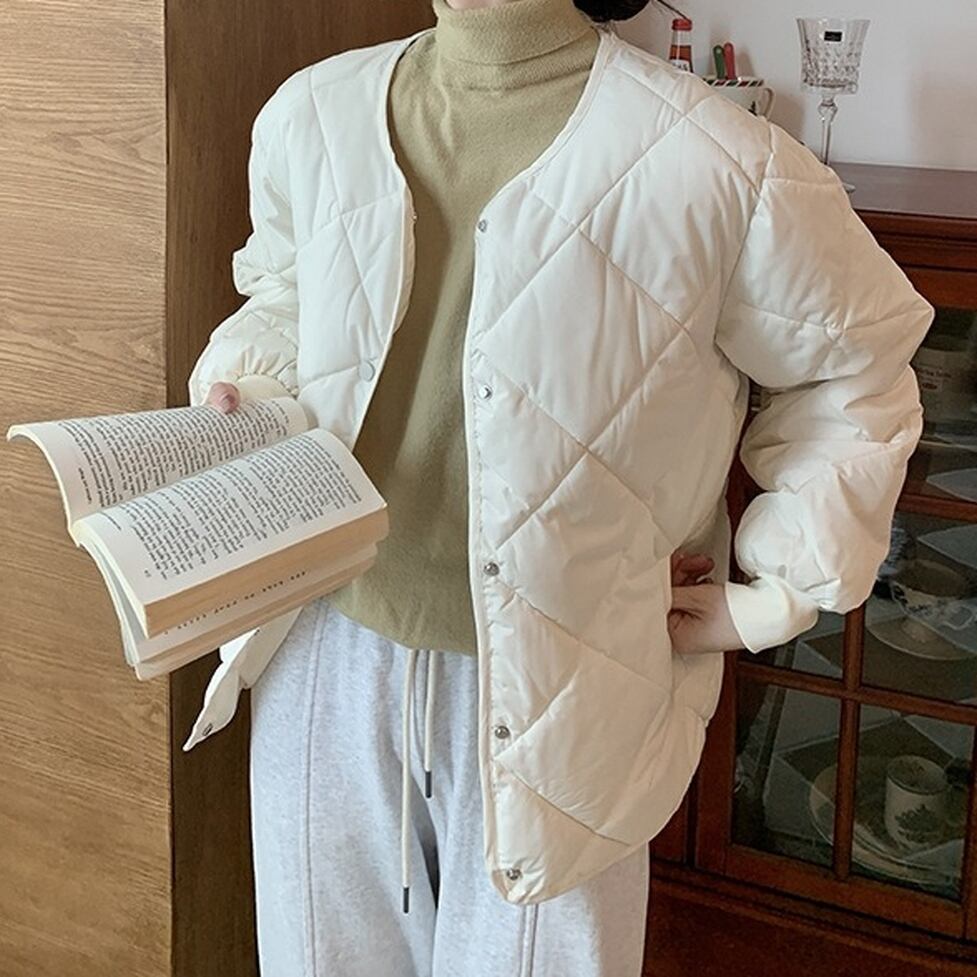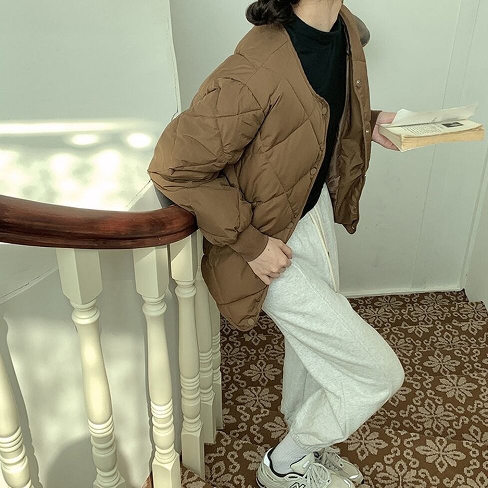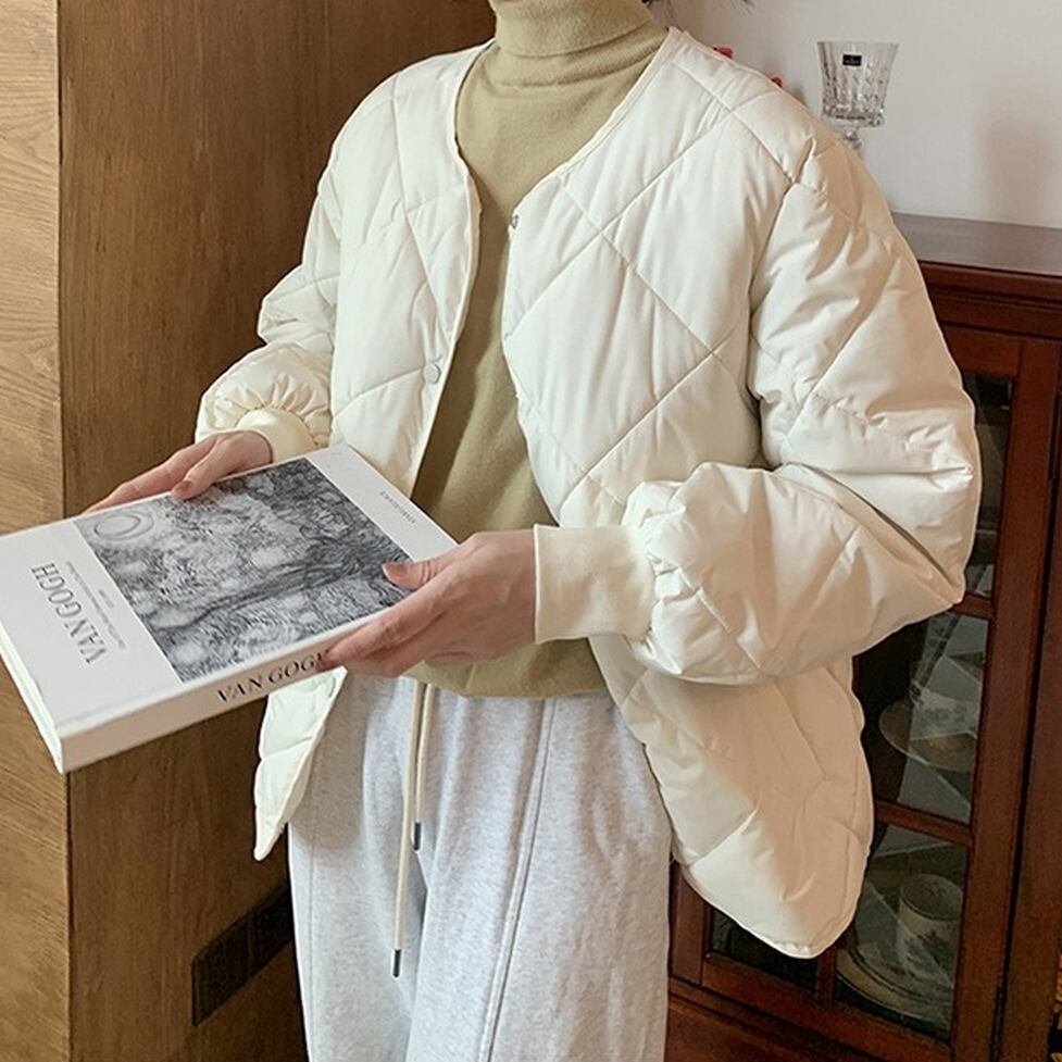 首まわりにクセがなくアウターでも印象を操作しやすいノーカラー。幅広いオシャレを可能にしてくれるキルティングのジャケットです。正統派なクルーネック。曲線のシルエットが女性らしくまとめてくれる