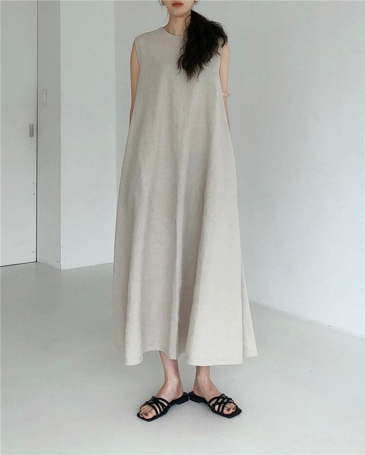 柔らかなコットン素材で作られたこのマキシ丈のワンピースです。 シンプルながらも大人可愛い印象を与えてくれます。 膝下のロング丈で、フレアシルエットが女性らしさを引き立てつつも、ハイウエストデザインでスタイルアップ効果も良いです。 ノースリーブの丈感は、春夏のシーズンにぴったり。 デートやお出かけ、休日のカフェでのひとときまで、幅広いシーンで活躍します。 色展開 ホワイト ベージュ ブラック ブラウン グレー ブルー カーキ サイズ S M L XL 2XL 3XL 4XL 5XL サイズ(cm) S /肩幅 34 /バスト 92 /ウエスト 106 /スカート丈 129 M /肩幅 35 /バスト 97 /ウエスト 111 /スカート丈 131 L /肩幅 36 /バスト 102 /ウエスト 116 /スカート丈 133 XL /肩幅 38 /バスト 107 /ウエスト 121 /スカート丈 135 2XL /肩幅 39 /バスト 112 /ウエスト 126 /スカート丈 137 3XL /肩幅 40 /バスト 117 /ウエスト 131 /スカート丈 139 4XL /肩幅 41 /バスト 122 /ウエスト 136 /スカート丈 141 5XL /肩幅 43 /バスト 127 /ウエスト 141 /スカート丈 143 《商品について》 当ショップで取り扱っている商品は、海外で製造されたノーブランド品となっております。 日本製品と比べて、縫い目の粗さ、小さなほつれ、軽微な汚れやシミ、ファスナーのかたさ、形やサイズのばらつき、仕様の細かな違い、その他仕上げの甘さなどが見られる場合がございます。 サイズは平置きでの実寸を記載しておりますが、測定方法や生産工程の違いにより、最大で3cm程度の誤差が生じる場合がございます。 これらは製品の特性であり、不良品には該当いたしませんので、あらかじめご了承ください。 また、ご利用のモニターやスマートフォンの設定などにより、実物と色味が異なって見える場合がございます。 《発送について》 当ショップの商品はすべてお取り寄せ商品となっております。 ご入金確認後、商品のお届けまでに10〜24日程度のお時間を頂戴しております。 状況により、通常よりお時間をいただく場合もございますので、あらかじめご了承ください。 また、欠品や製品の不具合などにより、ご注文をキャンセルさせていただく場合がございます。何卒ご理解賜りますようお願い申し上げます。 ※ご入金確認後にメーカーへ発注を行っております。 ※メーカーにて在庫切れが確認された場合は、速やかにご返金させていただきます。 《返品についての特約に関する事項》 ご注文確定後のキャンセル、ならびにサイズ・カラー等の内容変更はお受けしておりません。 ご注文の際は内容をご確認のうえ、お間違いのないようご注意ください。商品に不良がある場合を除き、返品・交換はお受けしておりません。 何卒ご理解のほど、よろしくお願い申し上げます。 最後までご覧いただき、誠にありがとうございました。 N-NBL-A02483
