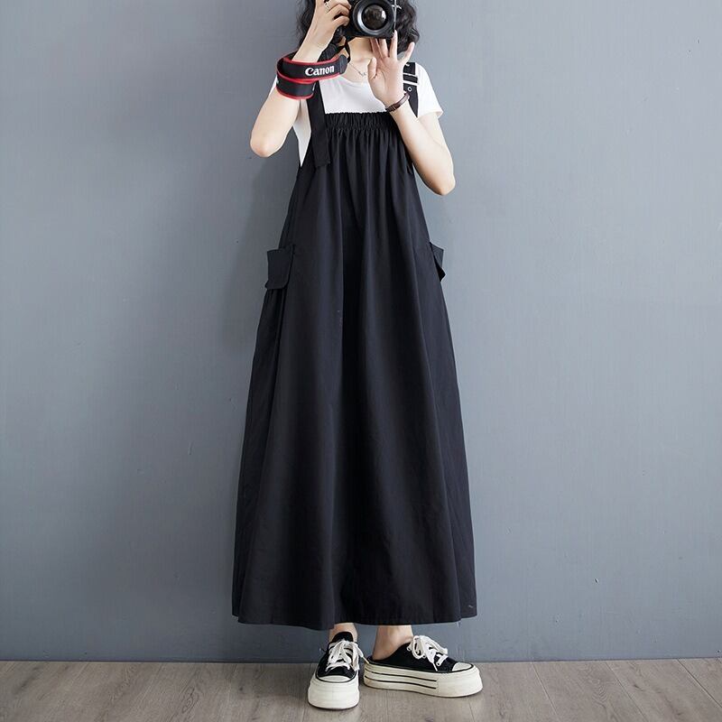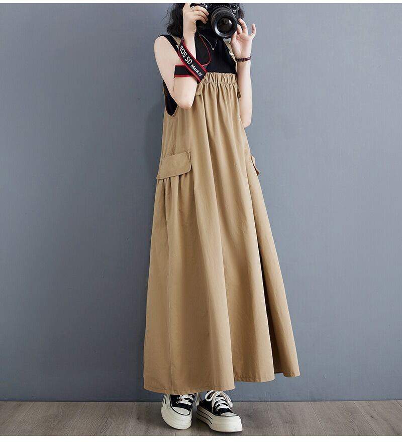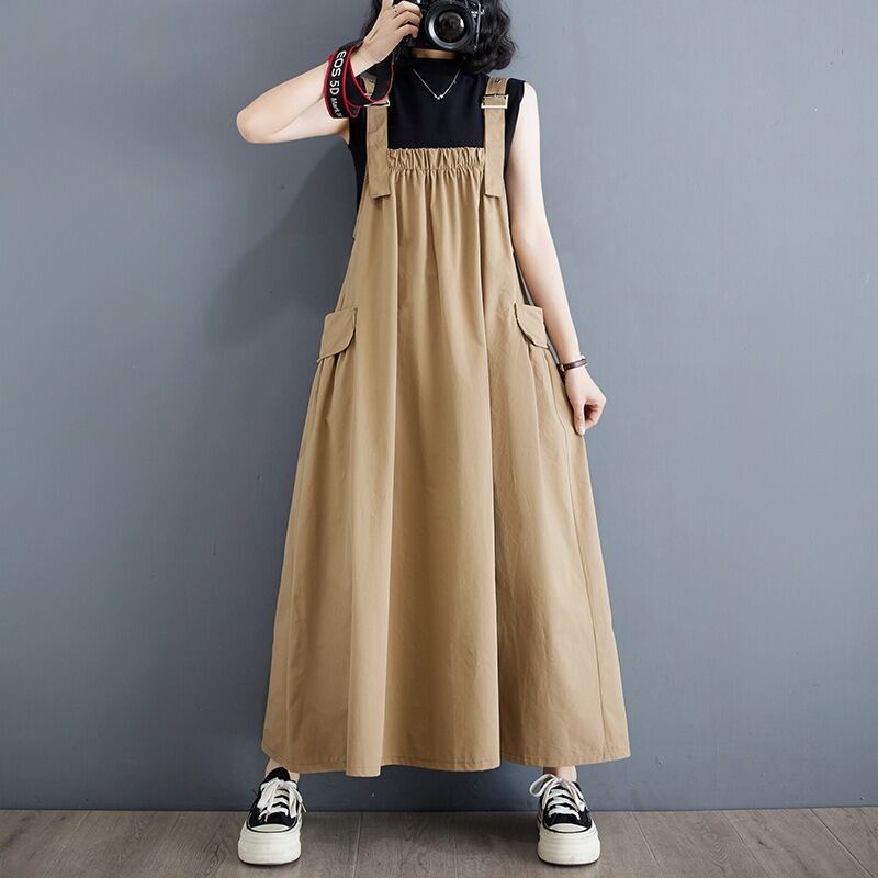 膝下のロング丈とフレアシルエットが女性らしさを引き立て、さりげなく体型カバーも実現します。
