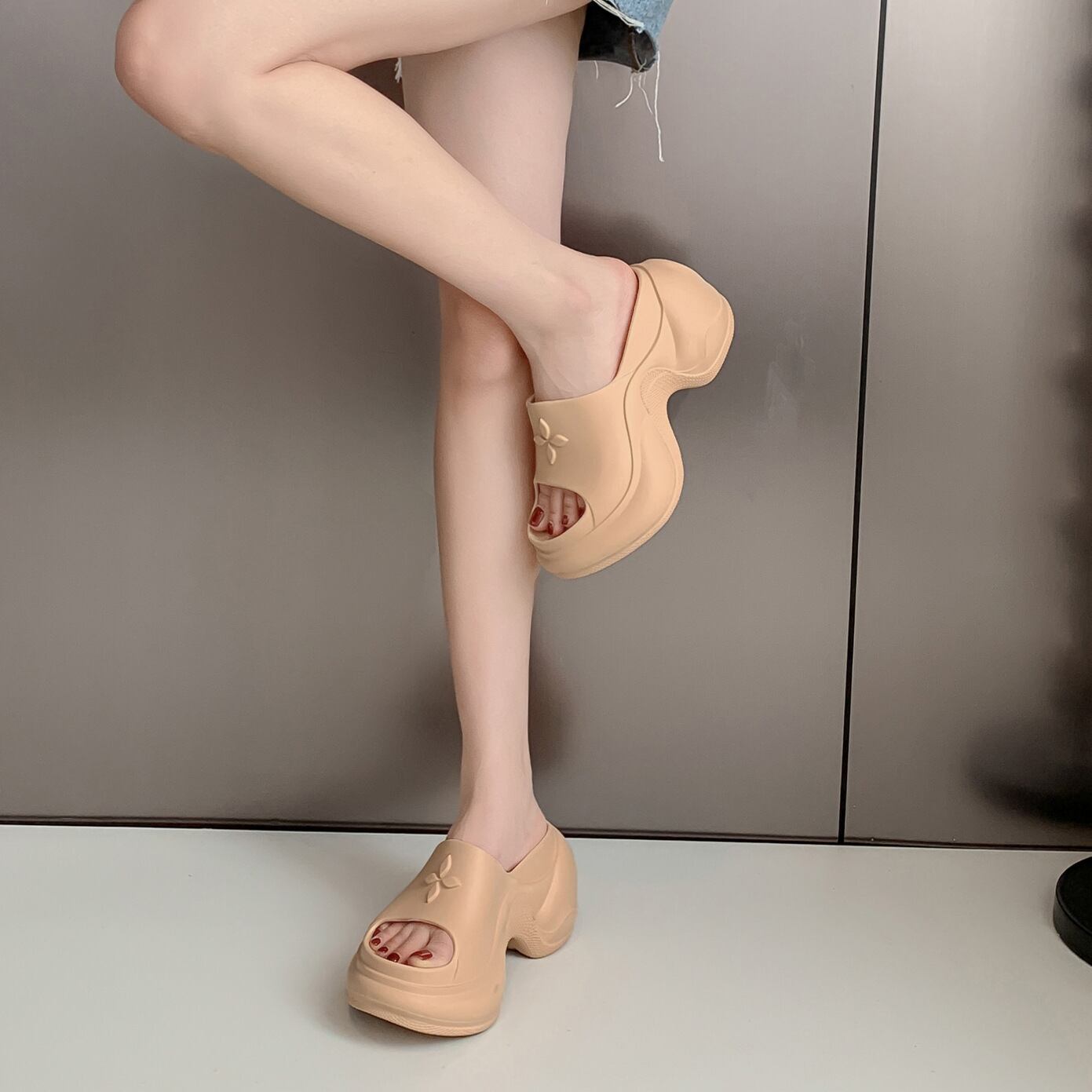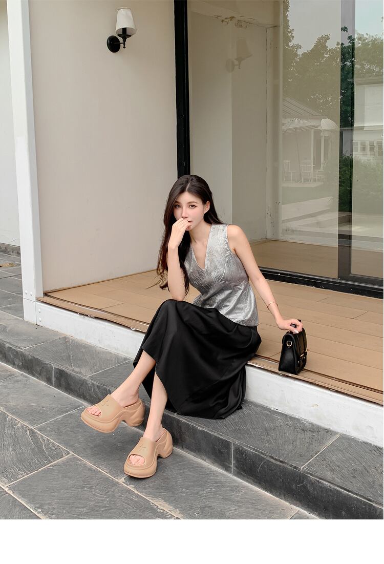 ボーイッシュでラフな抜け感が魅力の、厚底ビーチサンダル。