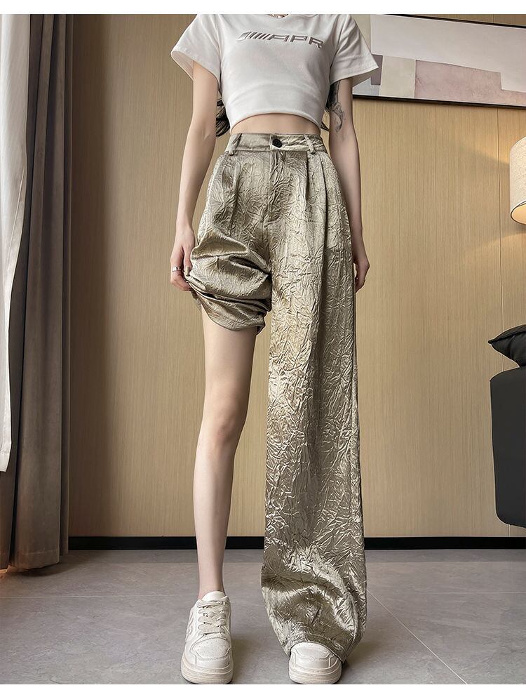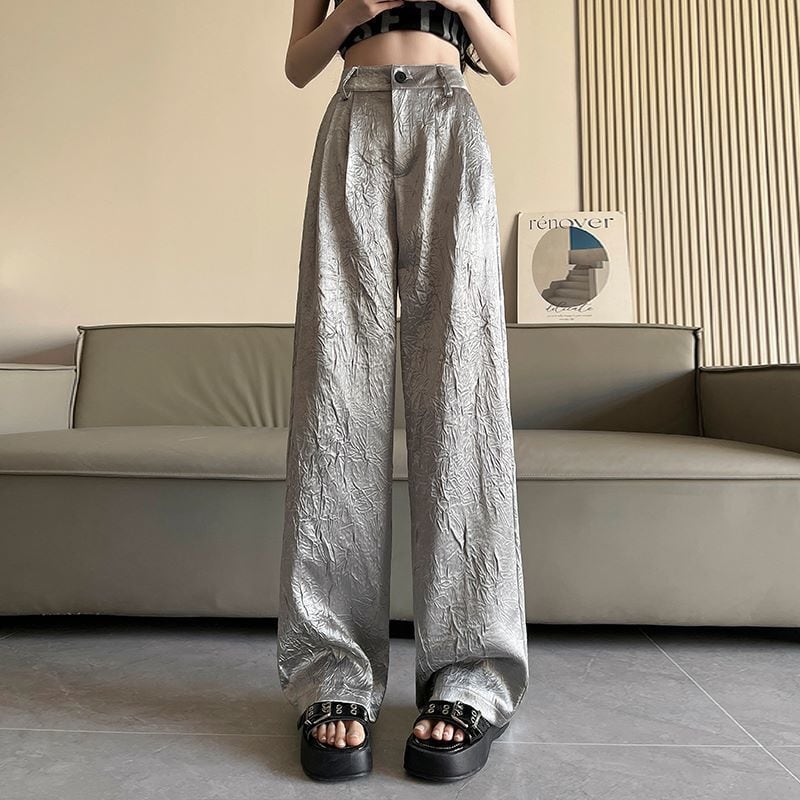 視線を奪うメタリックシルバーと独特のシワ感が、スタイリングに個性をプラス。