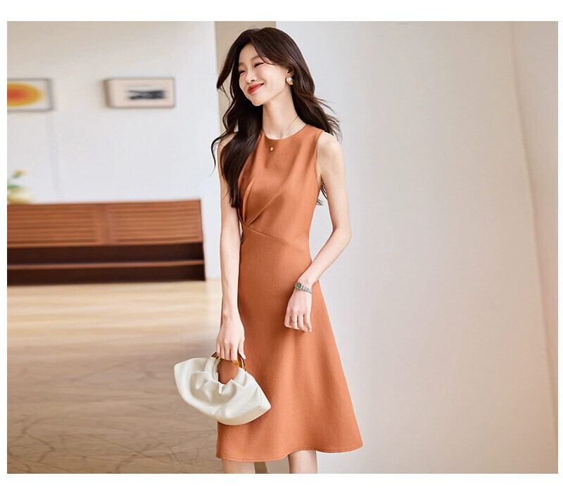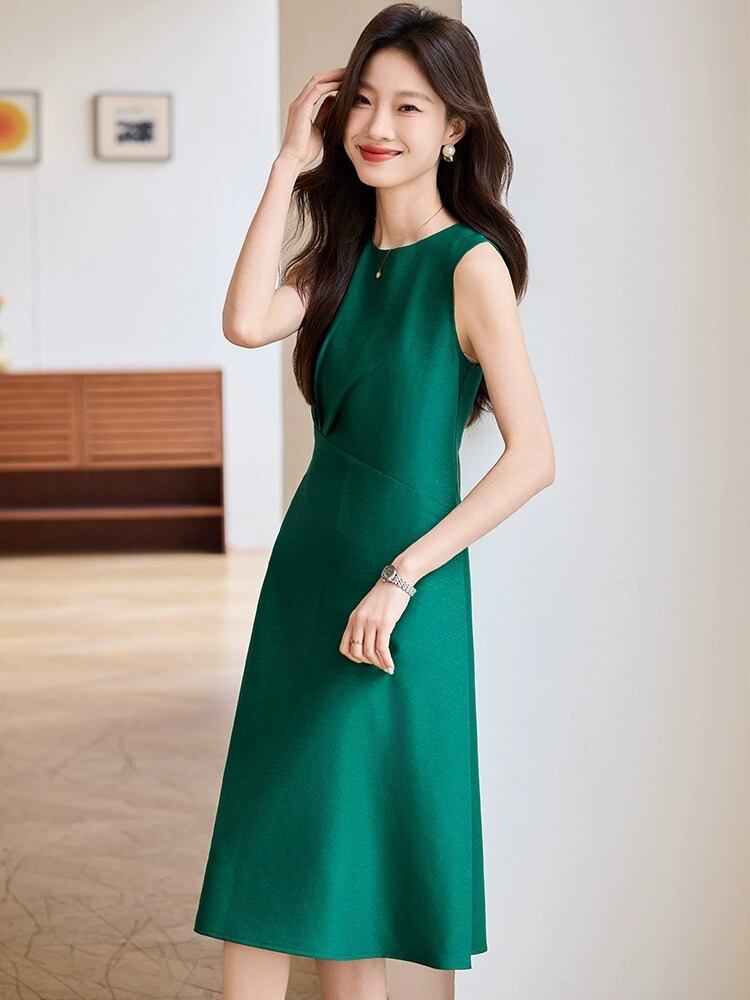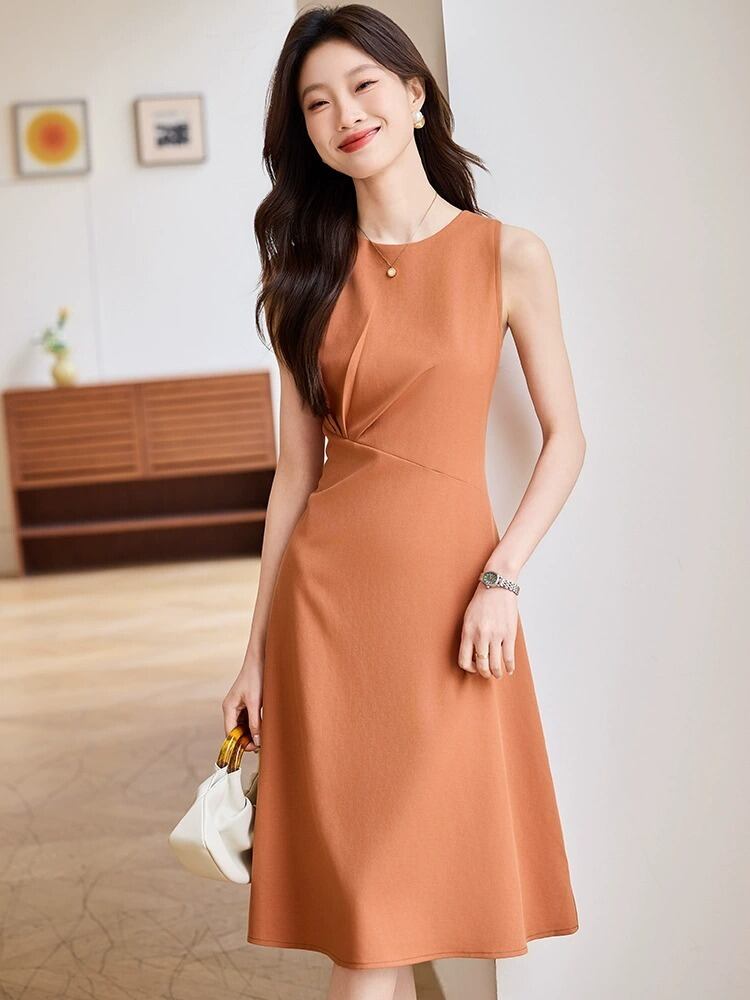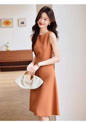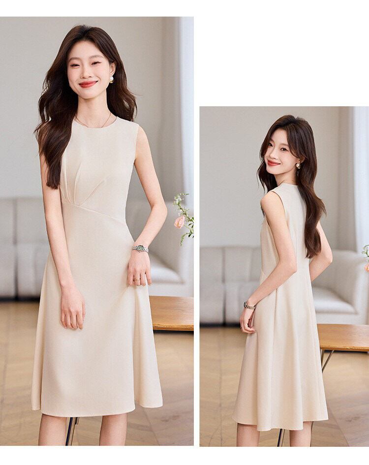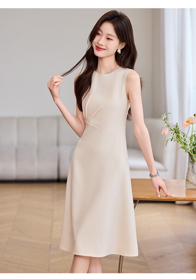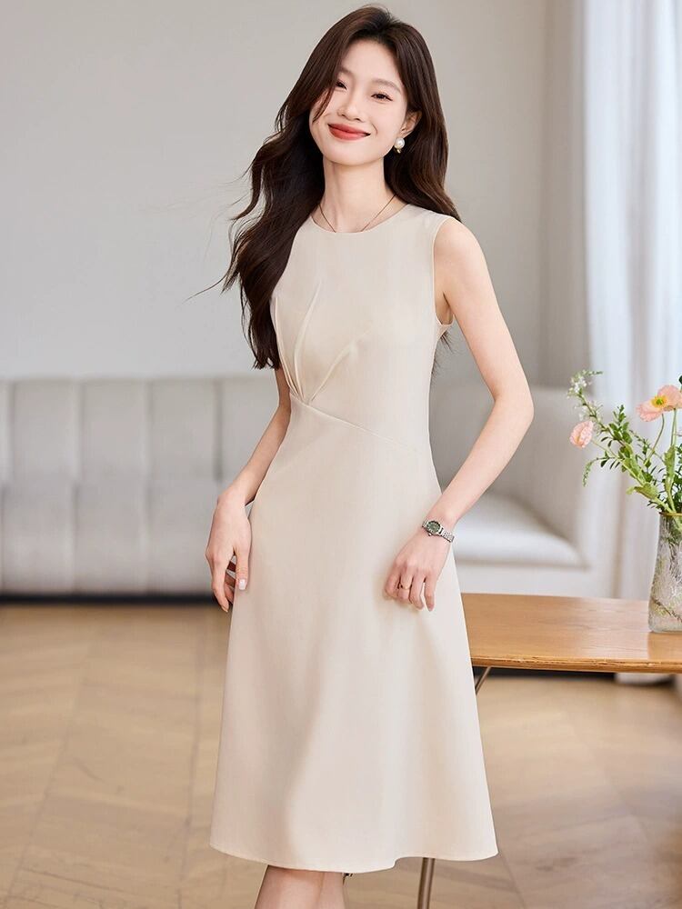 シンプルながら計算されたシルエットが美しい、上品なノースリーブワンピース。