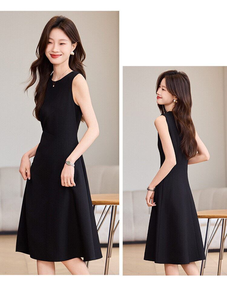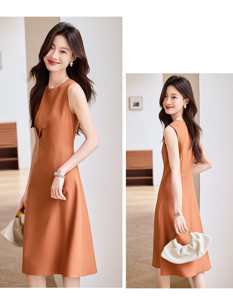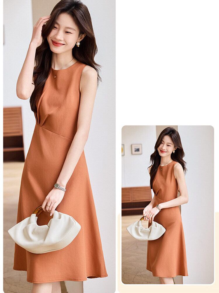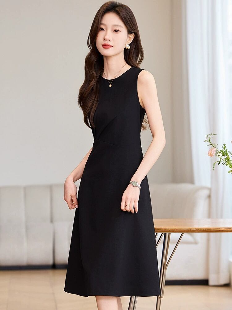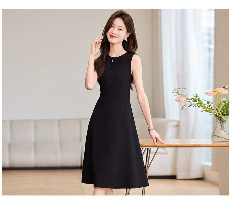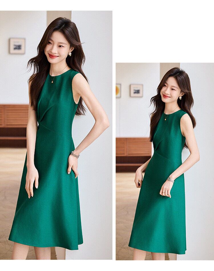 シンプルながら計算されたシルエットが美しい、上品なノースリーブワンピース。