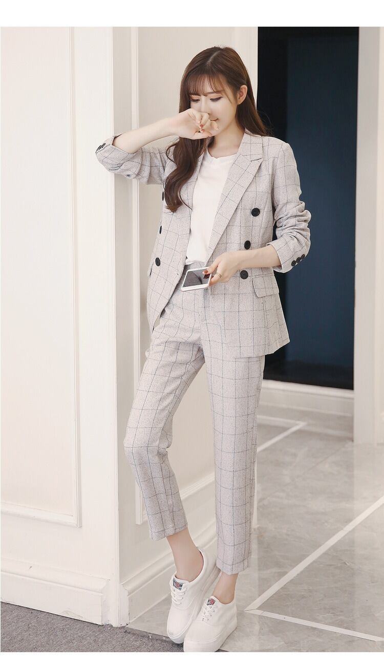 上品なテーラードジャケットと、美脚見えを叶えるテーパードパンツのセットアップ。